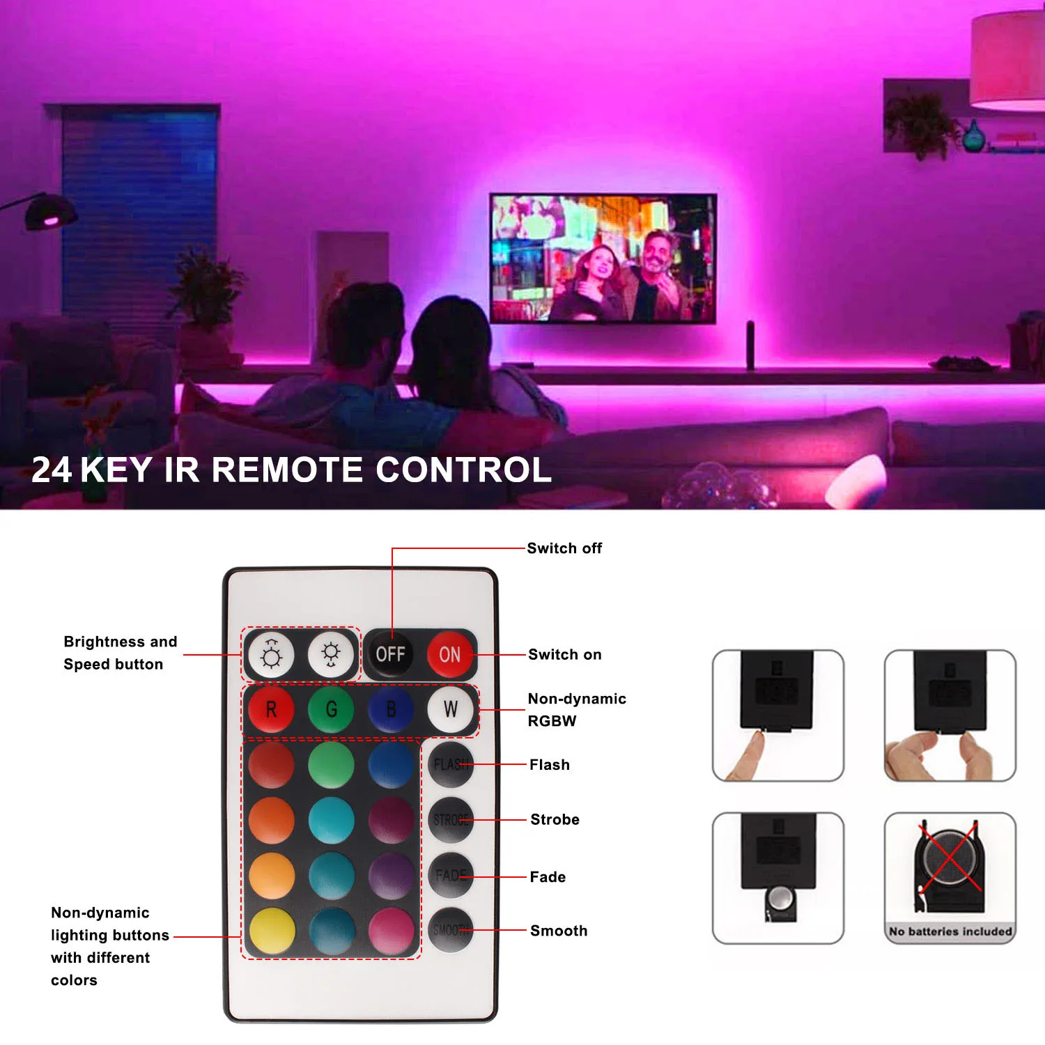 • Светодиодный Тип: SMD 5050, ИК-набор с 24 клавишами