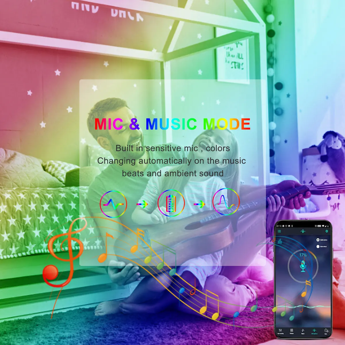 【WiFi контроль 】 умная система освещения, микрофон и музыкальный режим и режим синхронизации, изменение цвета.