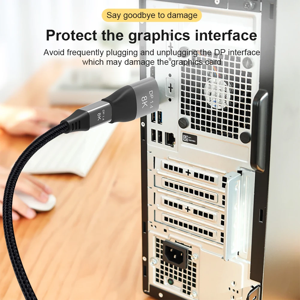 С помощью нашего кабеля, вы можете легко проецировать на HDTV, больших мониторах экрана и экранах проектора, чтобы еще больше удовлетворить ваши требования для встречи, домашнего кинотеатра, домашнего офиса, игры и другие сцены через внешние дисплеи. Этот кабель Max поддерживает разрешение 8K(7680*4320) Ultra High Definition, поддерживает частоту обновления 8K @ 60Hz 4K @ 144Hz