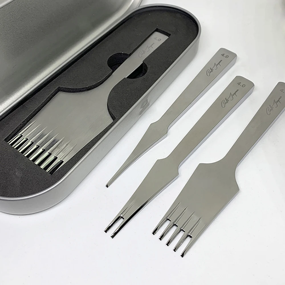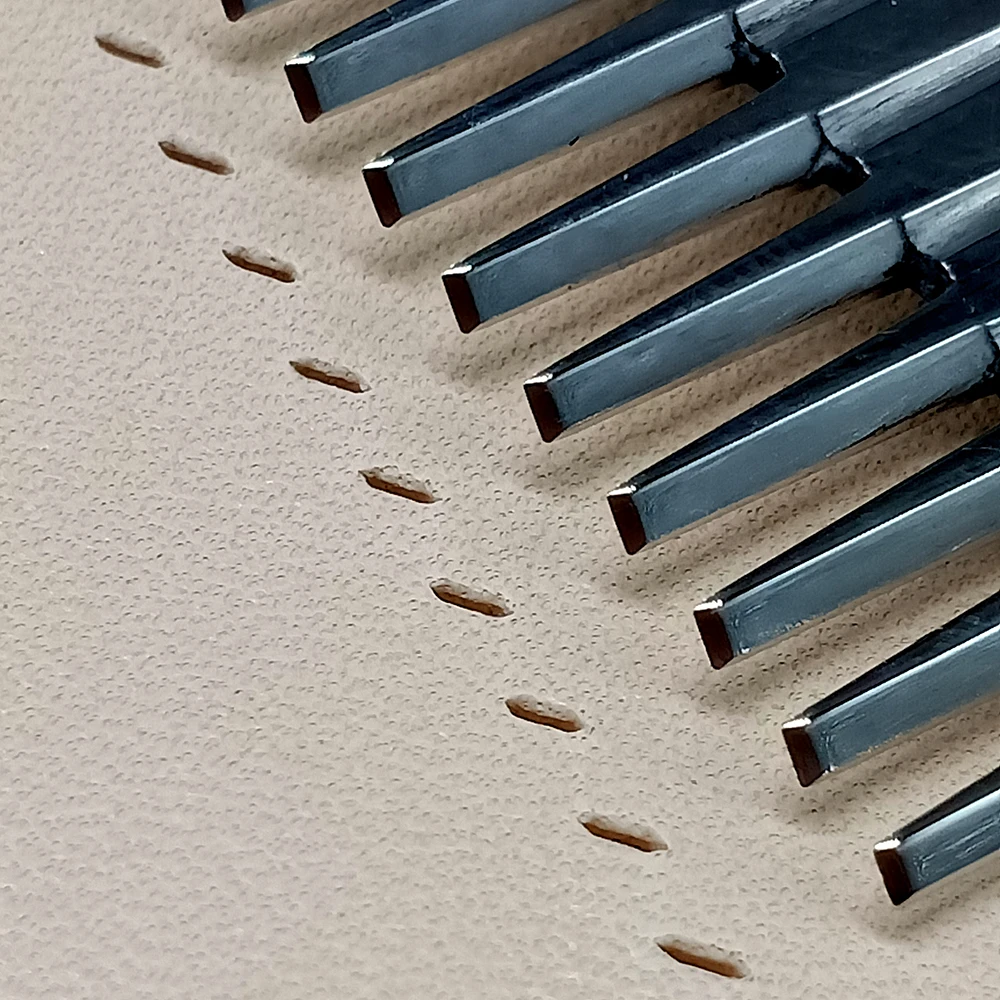 Зубцы с навязчивыми зубцами или обратными зубцами. Когда вы смотрите вниз отверстия, перфорированные изюмом, слева направо отверстие идет «вверх». Отверстия, перфорированные обратным зубилом, слева направо, он идет «вниз». Это соответствует более высокой потребности в штамповке и прошивке. Кроме того, с этим двумя видами направления вы можете пробить отверстие по обеим сторонам кожи.