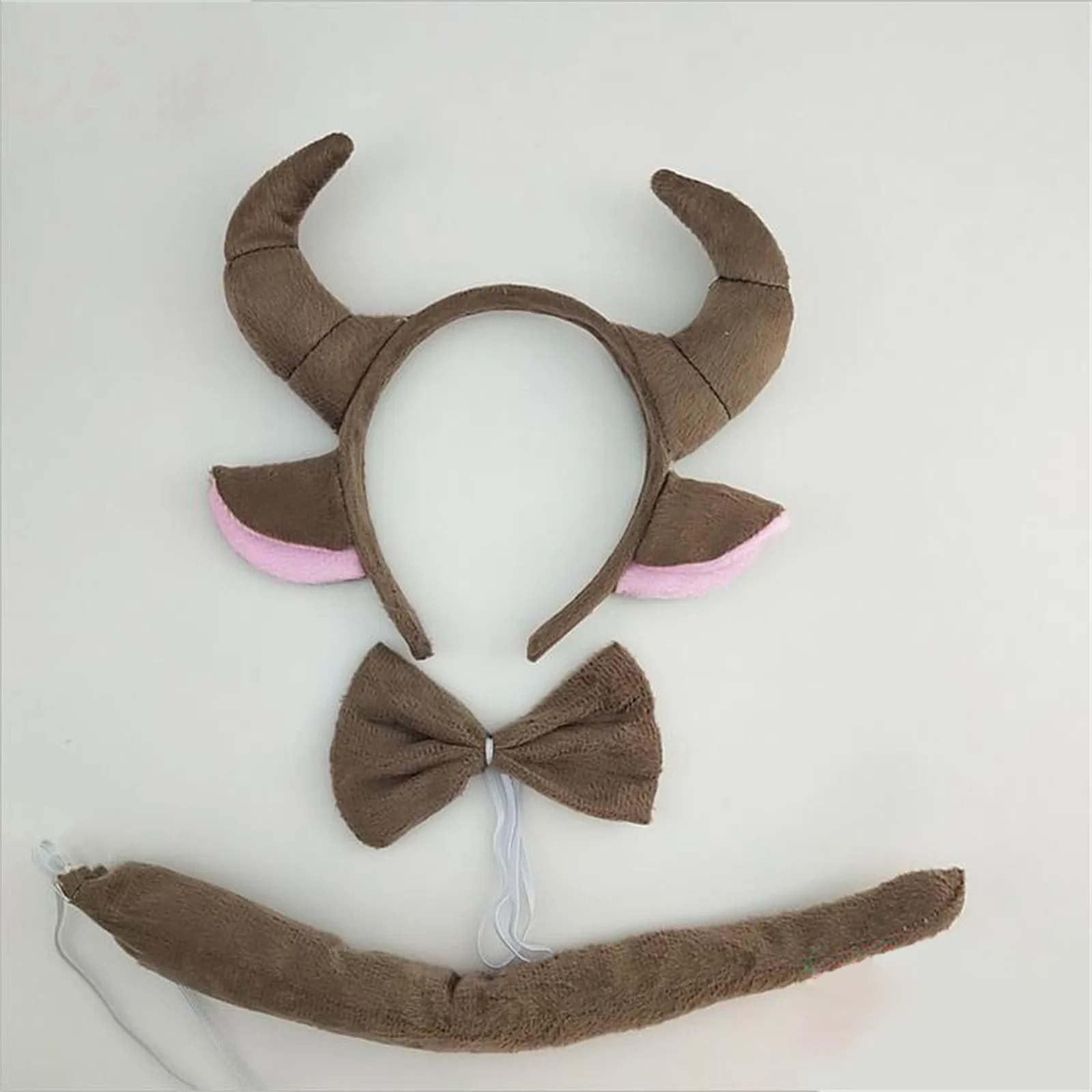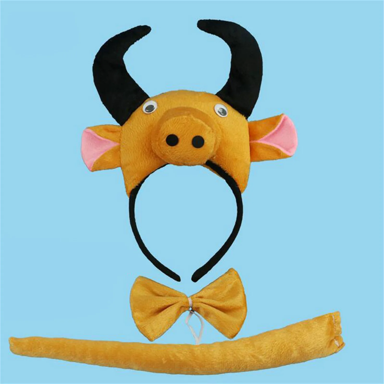 3 шт./компл. набор головных уборов с рисунком коровы, Детские аксессуары для костюмированной вечеринки с животными, повязка на голову с галстуком-бабочкой и хвостом, забавные вечерние игрушки