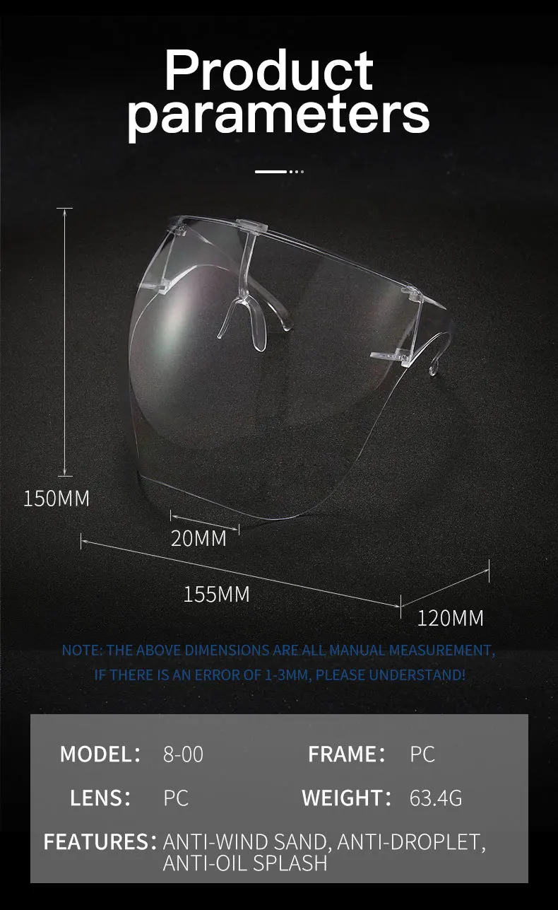 * 2. Сверхвысокие очки покрывают ваше полное лицо, чтобы обеспечить большую защиту.