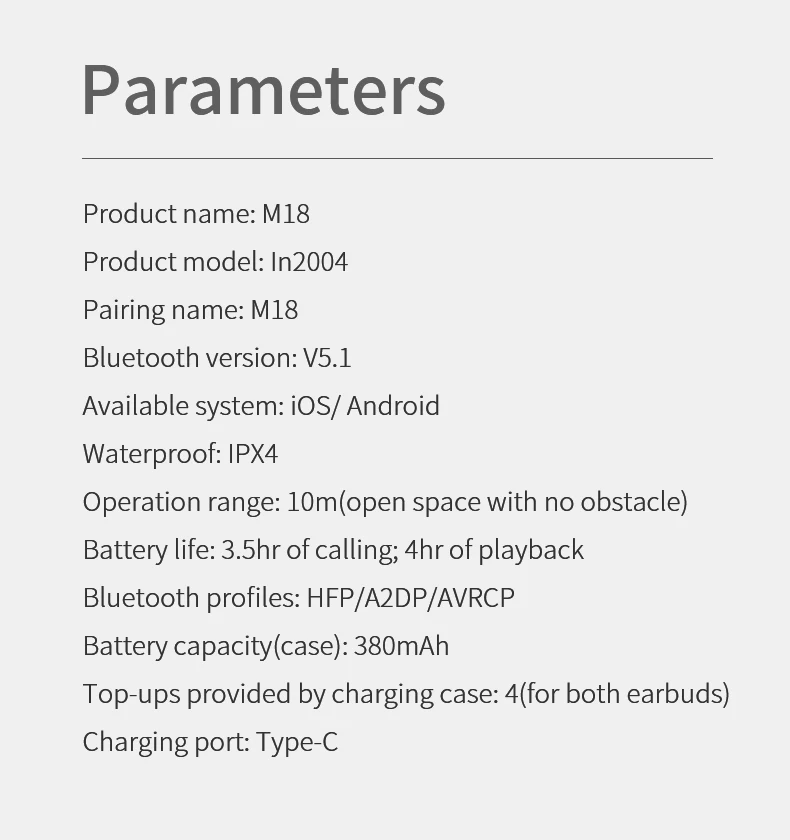 1x QCY M18 с зарядный чехол, кабель Type-C, 1x руководство
