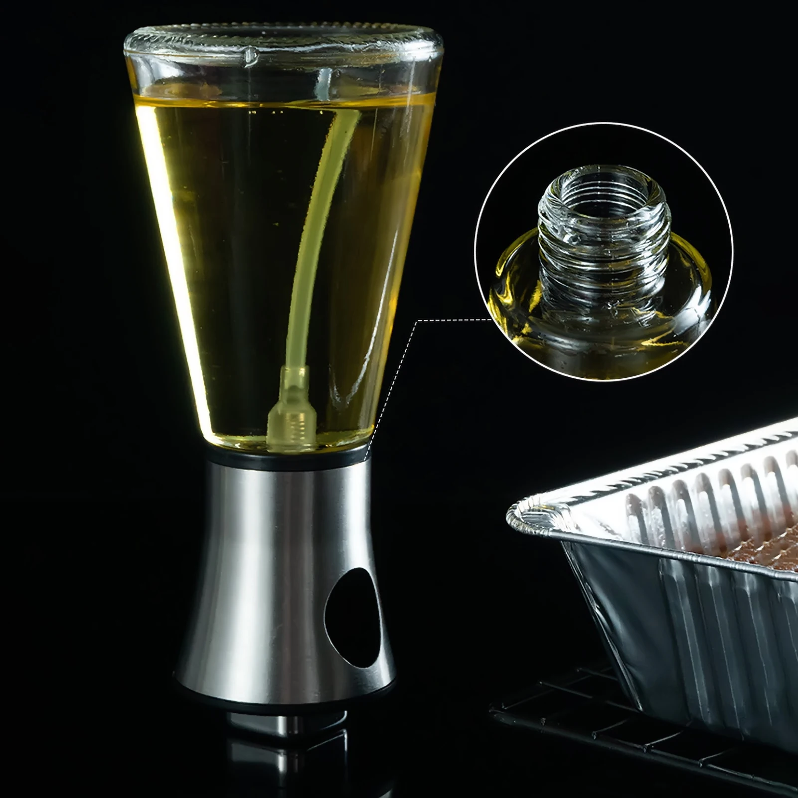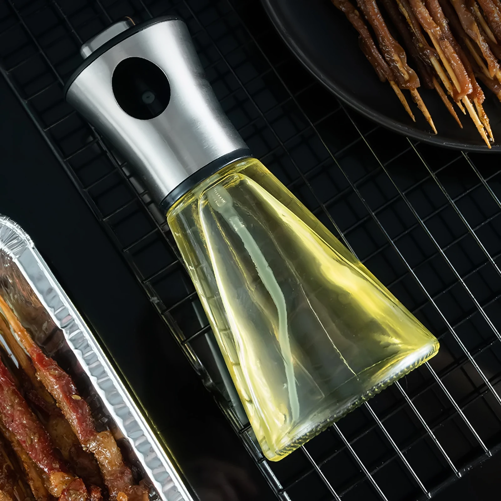 Изготовлено из высококачественной нержавеющей стали 304 и стекла, эта бутылка для распылителя масла безопасна, безопасна и экологична.