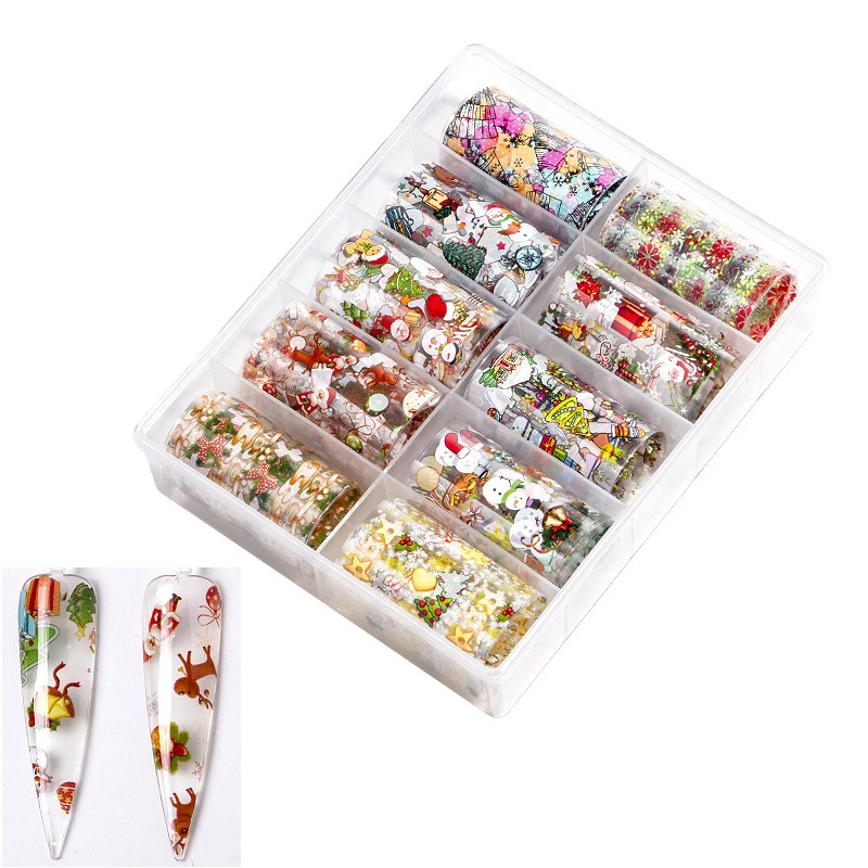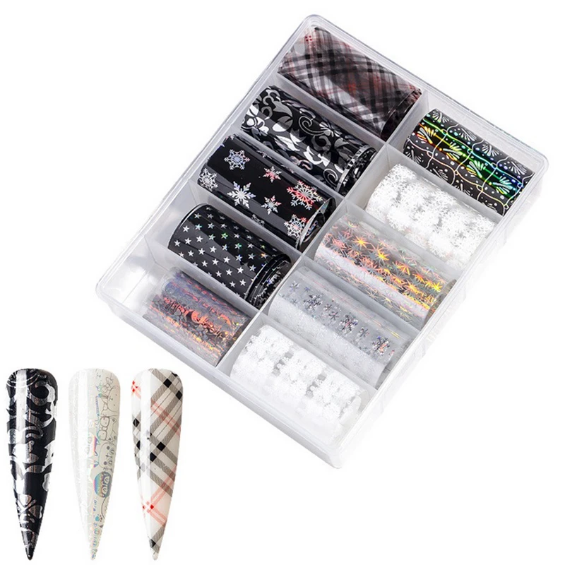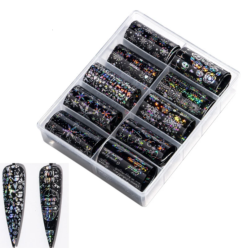 10 рулонов/коробка для ногтей Переводные Фольга наклейки