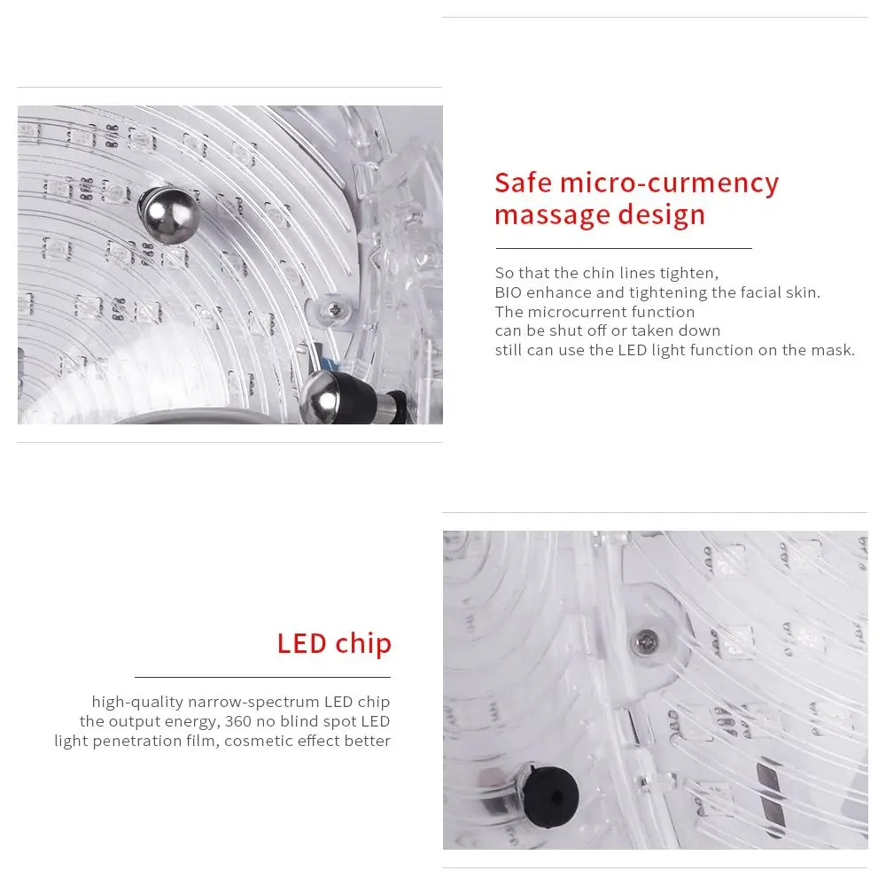 -100% новый и высокое качество -Помогает активировать коллаген -Способствует росту коллагена кожи, делает кожу более полупрозрачной и белой -Затягивает поры, делает кожу более упругой, улучшает яркость кожи, более гладкой и эластичной -Ускорение детоксикации -Эффективно ускоряет метаболизм кожи, способствует выведению токсинов кожи -Увеличение кислорода -Повышает проницаемость кожи, увеличивает кислород для блокировки влаги кожи -Интимная система защиты глаз Непрозрачный защитный материал накладки дает Вам преимущества очков для глаз за пределами второй меры защиты глаз, так что глаза вдали от светильник stimu Отбеливание шеи Уход за кожей шеи с таким же уровнем, как и уход за кожей лица -Восстанавливает кожу -Безопасный микро-curmencymassage дизайн Так что линии подбородка затягиваются, Био улучшает и подтягивает кожу лица. Функция микротока может быть отключена или снята Все еще можно использовать светодиодный светильник на маске. Светодиодный чип Высококачественный светодиодный светильник с узким спектром, выходная энергия 360, без слепых пятен, светодиодный светофильтр, косметический эффект лучше -Стимулирует кровообращение, облегчает веснушки и красную кровообращение -При использовании на ежедневной основе не более 20 минут в день.
