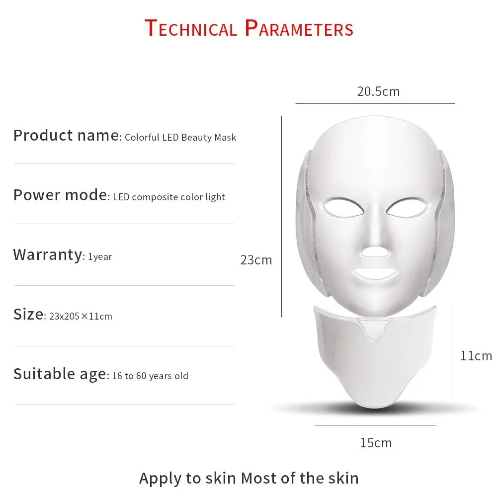 Светодиодный спектрометр для лица, 7 цветов, светодиодный светильник для лечения акне, шеи, кожи