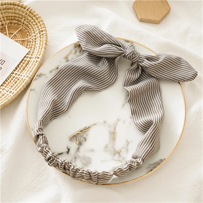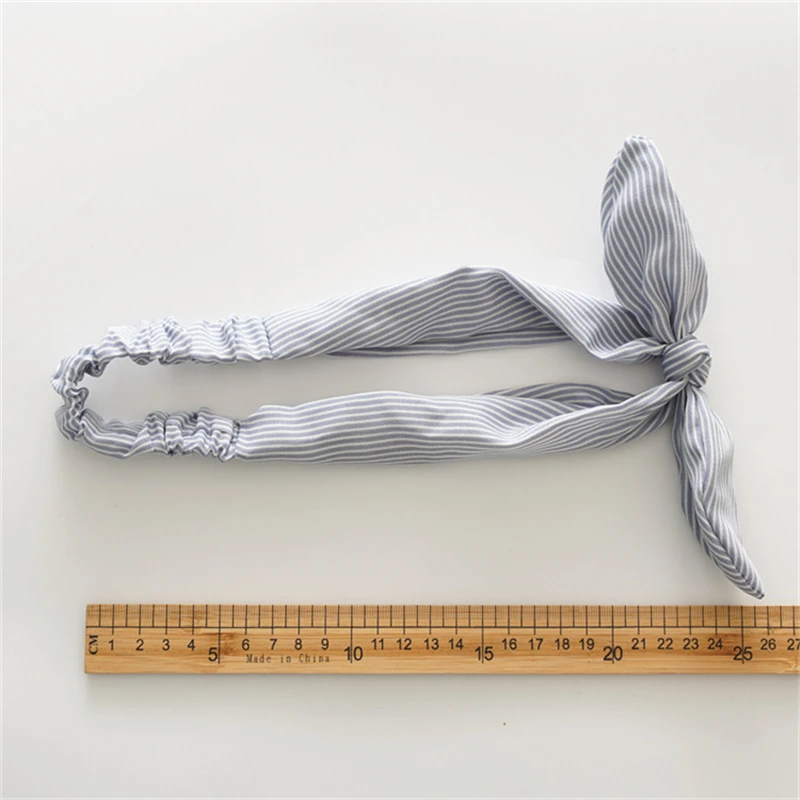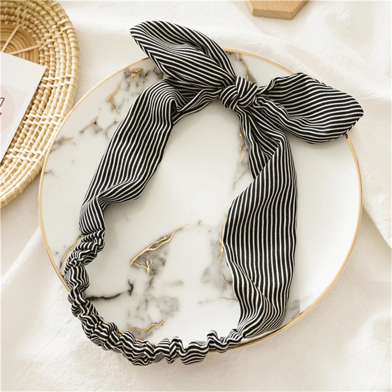 Женский бантик в полоску, мягкая эластичная повязка на голову с перекрестными ремешками, модный головной убор для девочек с ушками американского кролика, тюрбан