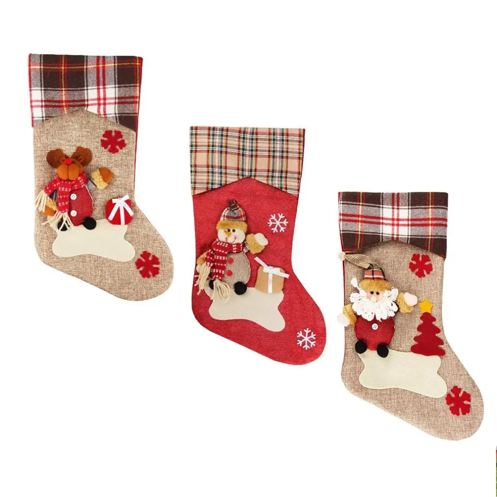 Большое значение 3 шт в комплекте рождественские чулки, в том числе Санта Клаус, снеговика и оленя. Это, безусловно, идеальное дополнение к Рождественским украшениям и праздничным украшениям.