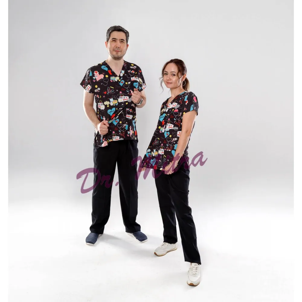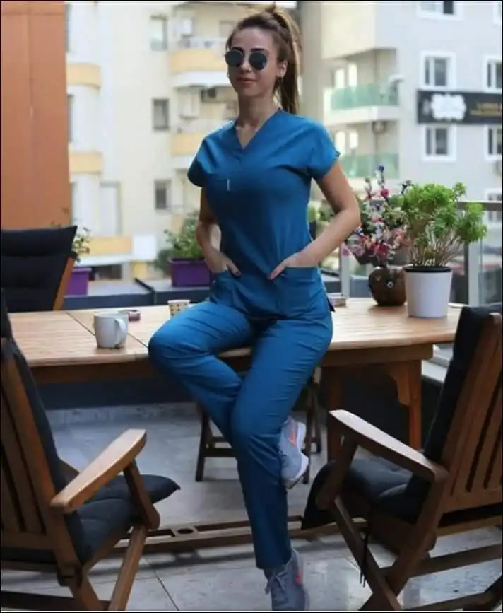 Форма-конверт TERIKOTON-комплект из 2 предметов с нижней и верхней частью.В верхней части есть 3 кармана, 2 в секции Юбки и 1 в области груди.Это модель рукава летучей мыши.
