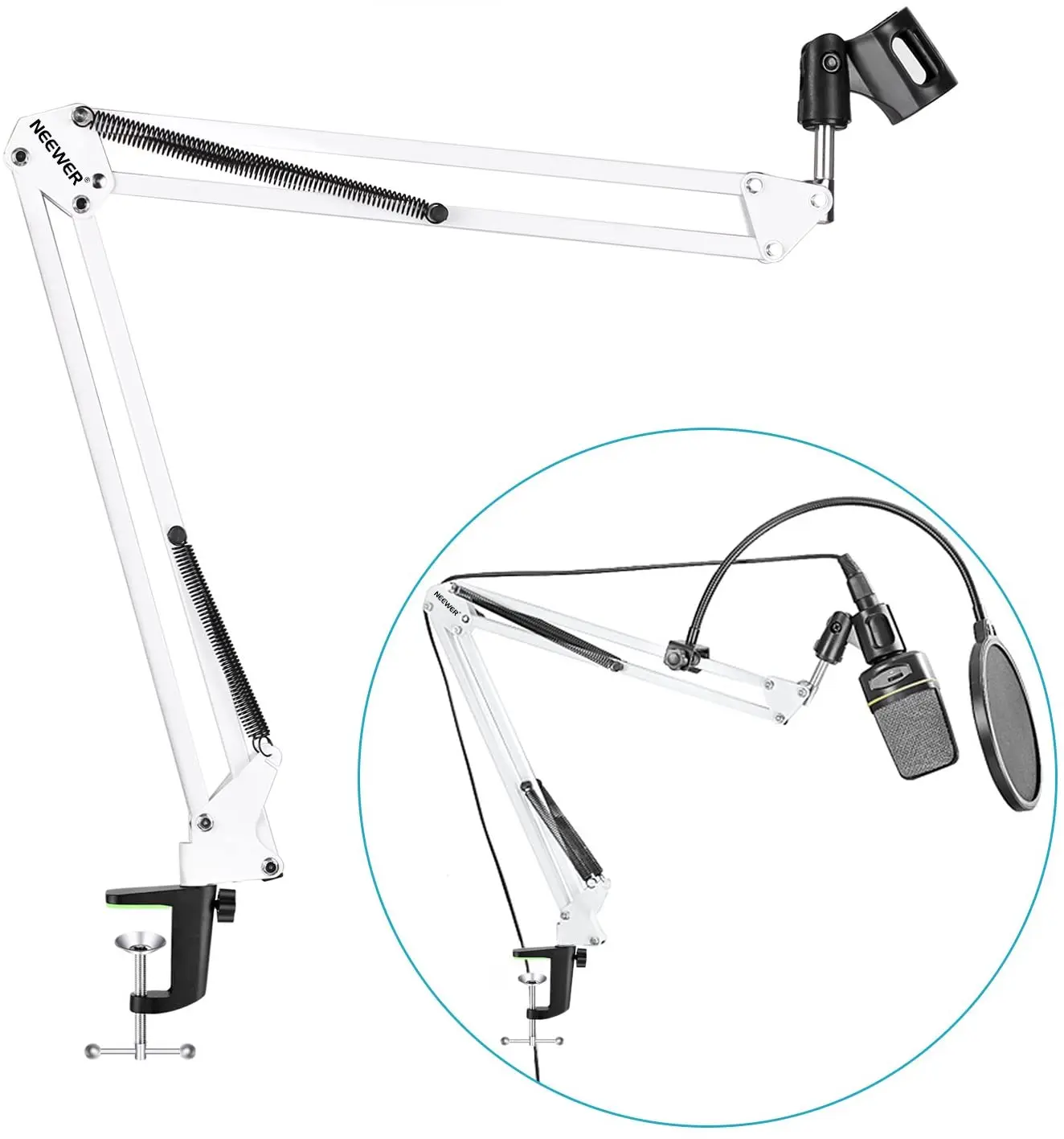 Регулируемый монтажный зажим: предназначен для надежного крепления подставки для микрофона на столешнице или другой плоской поверхности с помощью регулируемого установочного винта. Максимальная толщина стола составляет 1,7 дюйма/4,5 см; Примечание: он не совместим с Blue Yeti, а его Максимальная нагрузка составляет 1 килограмм Поп-фильтр: двойная нейлоновая сетка предотвращает уплотнение и выскакивание, чтобы получить ваши лучшие записи вокала. Гибкая гусиная шея на 360 градусов Обеспечивает регулировку любого угла или положения по вашему желанию Подставка для микрофона NB-35: изготовлена из стальной конструкции, прочна и долговечна. Регулируемые дужки позволяют легко носить его с собой и регулировать подходящий угол и высоту, чтобы показать ваш идеальный голос. Складной, удобно носить с собой Многофункциональность: держатель микрофона NB-35 подходит для любых магазинов, семей, сцены, студий, радиовещательных и телевизионных станций и т. д. Держатель зажима для микрофона: стандартный зажим для микрофона для крепления большинства портативных микрофонов стандартного размера, это очень полезно