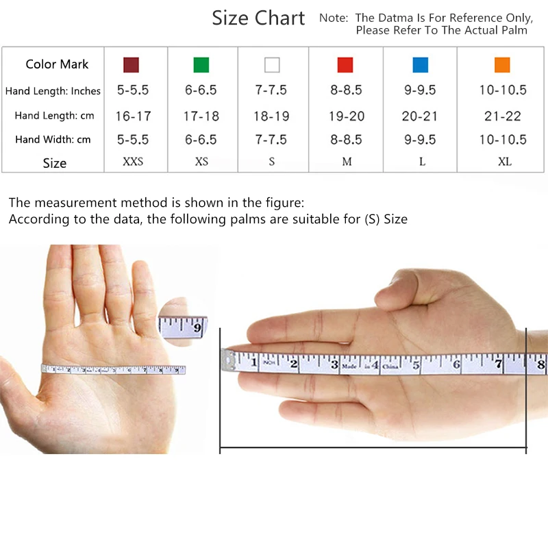 Следующая таблица размеров поможет Вам выбрать размер перчаток