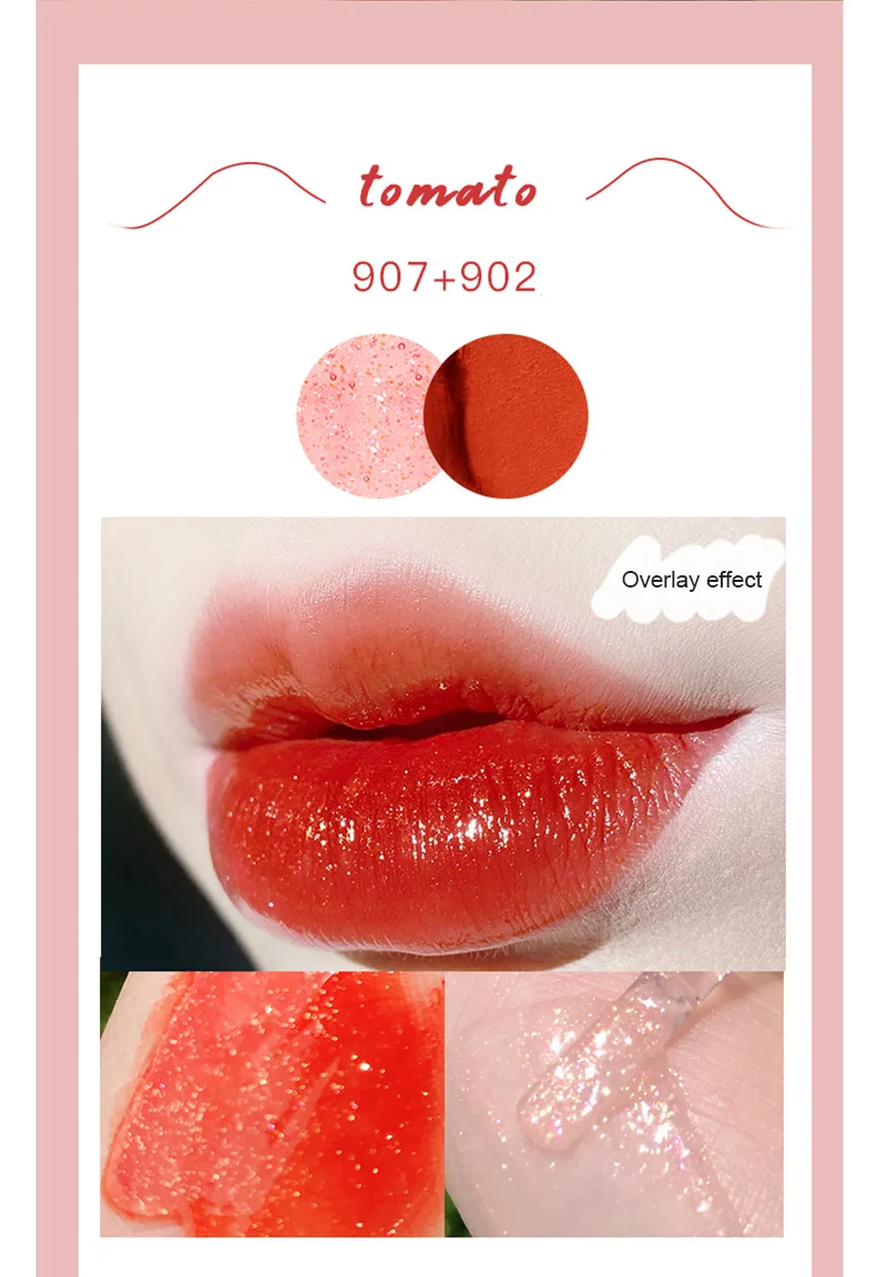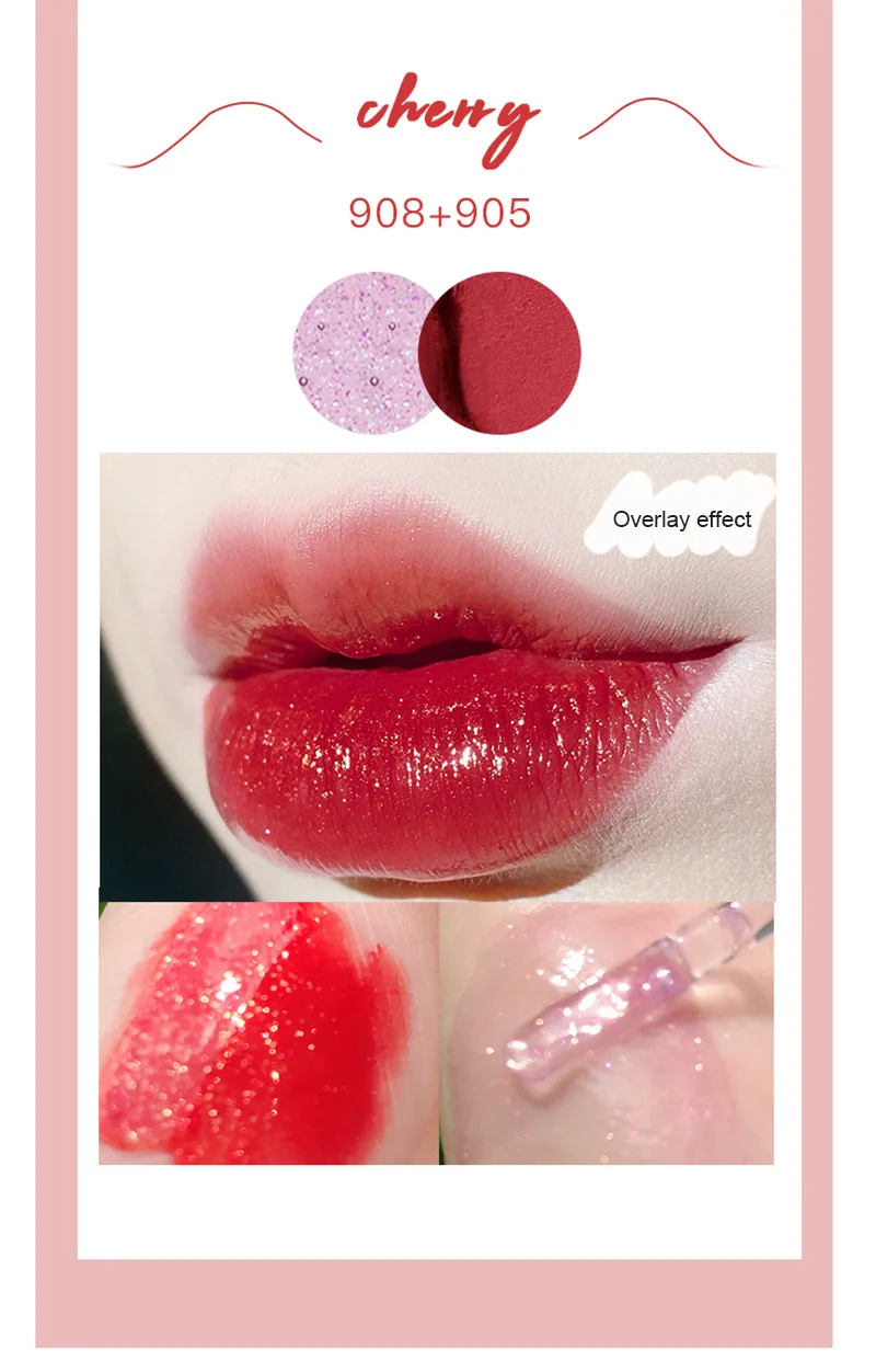Доступны разные цвета, два из которых представляют собой прозрачные глазури для губ, меняющие температуру, а цвет помады меняется при температуре.