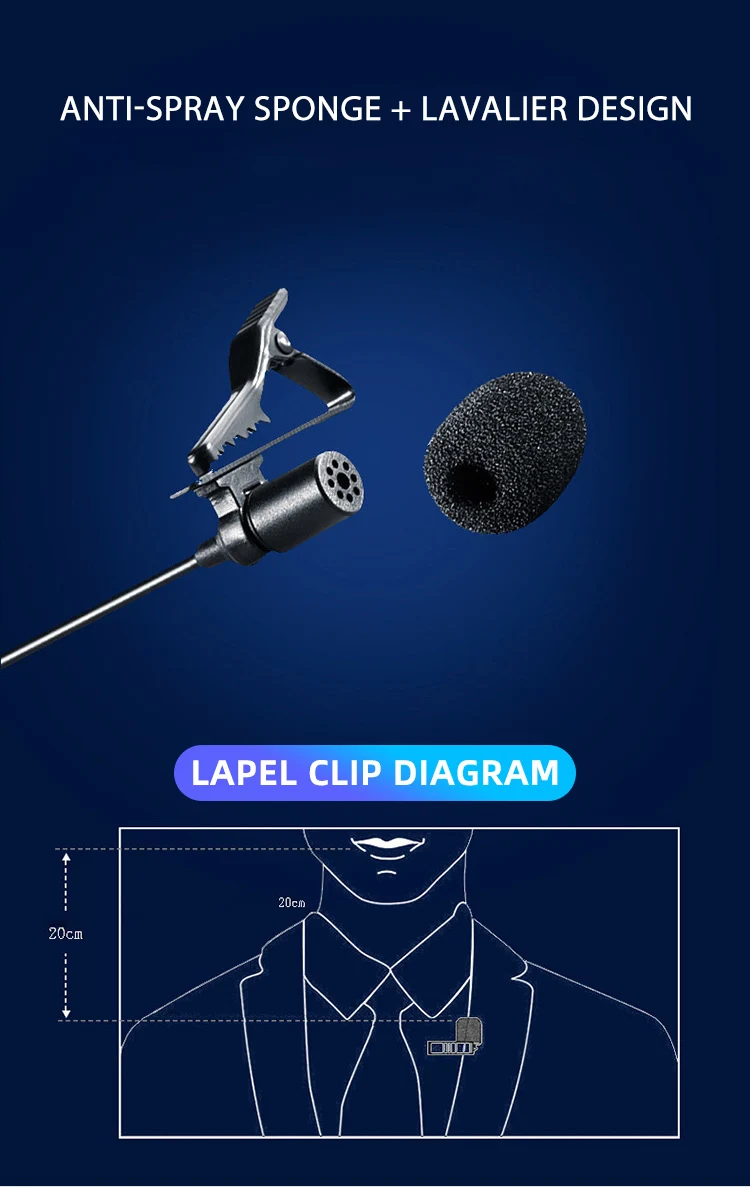 5. Губка высокой плотности с защитой от брызг, четкий звук, дизайн лавалье, легко носить с собой.