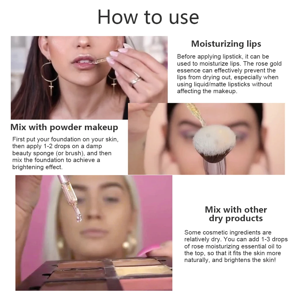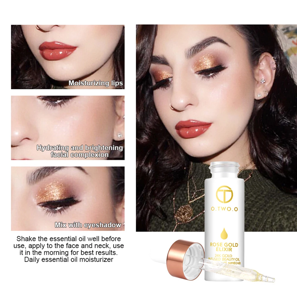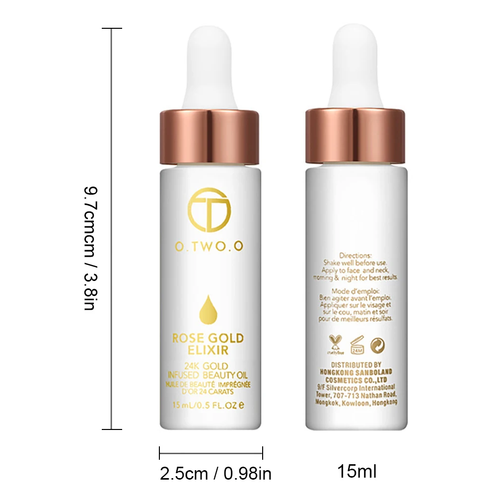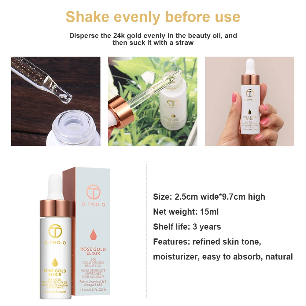 Название продукта: O.TW O.O 24k розовое золото эликсир косметическое масло для кожи масло для лица-15 мл Вес нетто: 70 г Размер продукта: 9,7*2,5 см Характеристики продукта: отбеливание, увлажнение, питание, пожалуйста, встряхните эфирное масло перед использованием, легко впитывается, это естественно и полезно для вашей кожи, питает кожу, замедляет старение, чистые 24k золотые хлопья непосредственно впитываются в вашу кожу, так что ваша кожа блестящая, естественно сияющая