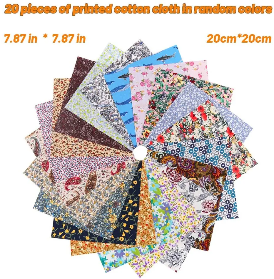 Material:100%cotton Size:20*20cm Use: Handwork DIY Thickness: thin/medium thick Style: plain weave Type:Printed