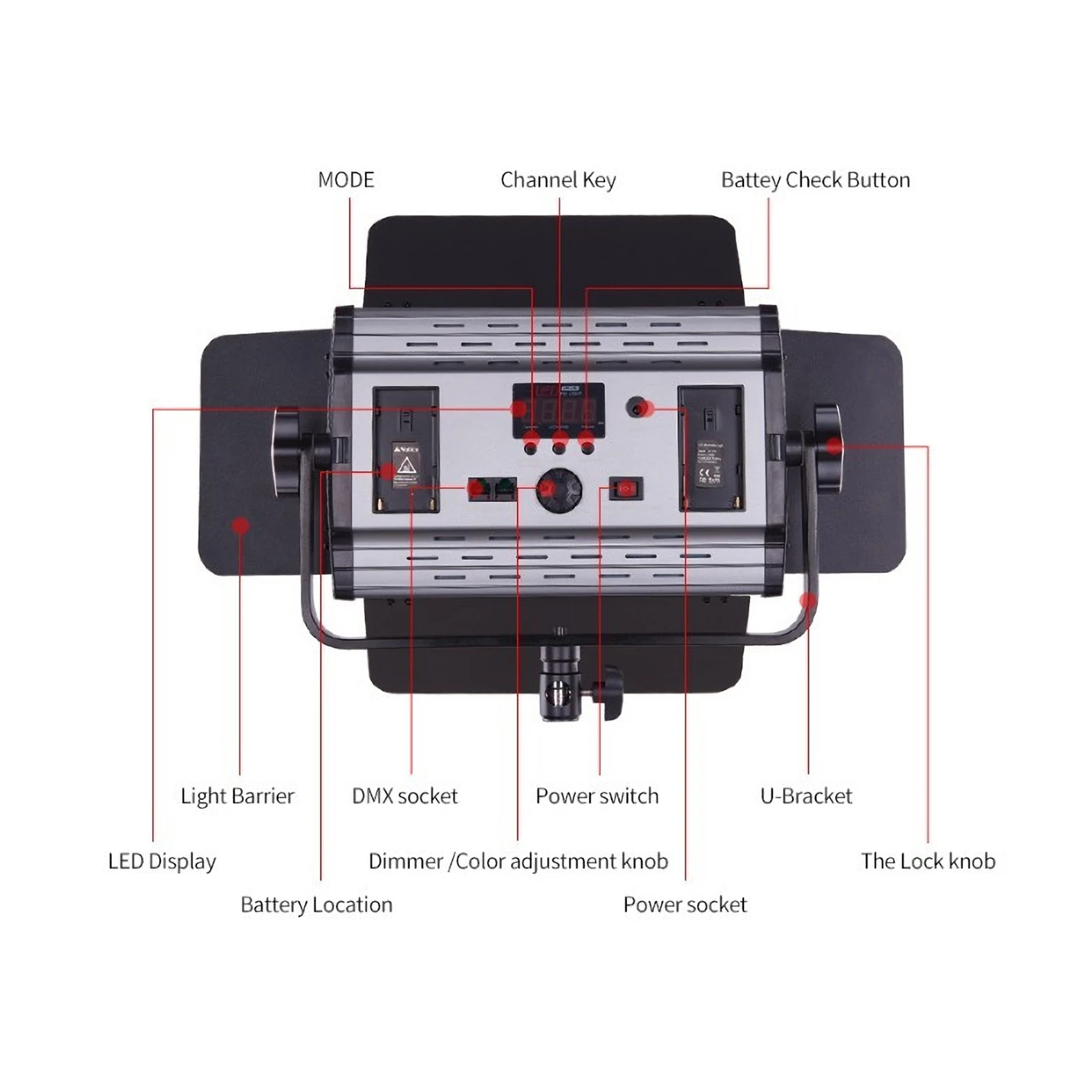Оборудованный с профессиональнымиU-образный кронштейн и 4-лист шторки, Который удобно регулировать угол освещения и диапазон быстро.