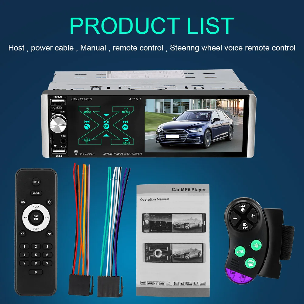 100% новый брендовый товар высокого качества! Поддержка рулевого колеса голосового дистанционного управления Поддержка для Apple телефона SIRI, Android телефон с помощью C-PLAY соединение для того, чтобы сделать машину с функцией voice Al функции. Нажмите и удерживайте кнопку голосовой функцией ключа на экране или голосовой функцией ключ на пульте управления рулевого колеса для от 2 до 4 лет, секунд позвонить голосового помощника для того, чтобы слушать ваш голос и быстро решить соответствует вашим потребностям. Подключение телефона поддержка для телефонов Apple/поддержка для телефонов на базе Android с Bluetooth проводное соединение, которые обеспечивают независимое функционирование мобильных телефонов и автомобиля MP5Runs гладко. Проводное соединение, вы можете легко использовать функции голосовой связи на MP5. Интеллигентая (ый) Al голосовое Голосовое управление C-PLAY подключения поддержка для Apple телефона SIRI, Android телефон с помощью C-PLAY соединение для того, чтобы сделать машину с функцией voice Al функции. Нажмите и удерживайте кнопку голосовой функцией ключа на экране или голосовой функцией ключ на пульте управления рулевого колеса для от 2 до 4 лет, секунд позвонить голосового помощника для того, чтобы слушать ваш голос и быстро решить соответствует вашим потребностям. Высокая точность воспроизведения радио улучшает качество звука, стабильный, радио, поддержка автоматического и полу-автоматическая радио. Вы можете хранить радиостанции, так что вы можете продолжать общение с такими в следующий раз. Поддержка для присоединения и взаимного контроля одного и того же экрана мобильного телефона может поддерживать 13,3 версия мобильных телефонов Apple, 10,1 версия Android телефонов Три порта USB confiqurations, usbl поддерживает чтение usb-диск, бывшая USB2 Поддерживает быструю зарядку, а вторая usb3 поддерживает USB рекордер Особенности: Поддержка RMVB / RM / FLV / 3GP / MPEG / DVIX / XVID/ДТА/VOB / AVI videofile формат Поддержка MP3 / WMA / WMV / OGG / APE / ACC / FLAC формат аудиофайла Поддержка JPEG / BMP / GIF / TIF формат изображения сканирования Принять 800*480 разрешение 26 миллионов полноцветный TF экран дисплея 2 способа Видео выход (один из способов вывода видео, один из способов зеркало заднего вида видео выход) 1 аудио выход Высокой четкости FM аудио функция и 18 станций предустановки Функцией автоматического хранения памяти после отключения питания Поддерживает высокопроизводительную TF-карты Дисплей песни слова и имена Поддержка поиска файлов Поддержка большой емкости SD карты, USB устройства Поддержка заднего вида функция Красочные задняя подсветка Аудио вход Поддержка BT и функцией касания RDS/AM Аудио функция и 12 станций предустановленный (опционально) Поддержка выходной мощности можно заряжать портативным зарядным устройством для мобильного телефона или другого USB-устройства. Поддержка функции FM. (частота: 87,5-108 МГц) Поддержка устройства хранения: USB диск/TF карта устройства Технические характеристики: Цвет: черный Зеркальный соединения 4,1 дюймовый сенсорный экран Встроенный модуль Bluetooth + микрофон Поддержка hands-free звонков Воспроизведение видео высокой четкости Интерфейс: USB / TF/ AUX Автоматическое преобразование красочных огней 24 часа в сутки цифровые часы, дату. С разъемом подачи внешнего сигнала AUX вход Зеркало заднего вида приоритет Отношение сигнал/шум: 65db Амплитудно-Частотная характеристика: 20 Гц-20 кГц Громкоговорите