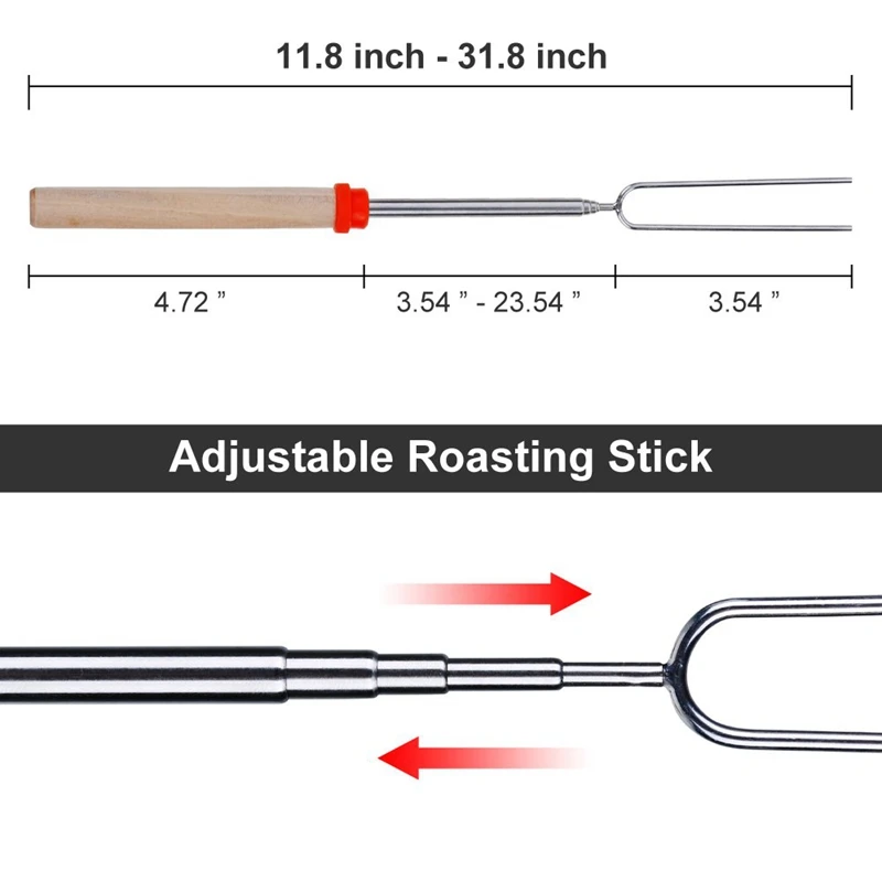 Безопасность для детей и семьи: безопасность в первую очередь! Эти палочки для запекания выдвигаются до сверхдлинных 45 дюймов, что поможет сохранить вашу семью вдали от пламени во время запекания (идеально подходит для легких продуктов, таких как Зефир, морали и т. д.), острые наконечники защищены резиной, что очень безопасно для детей