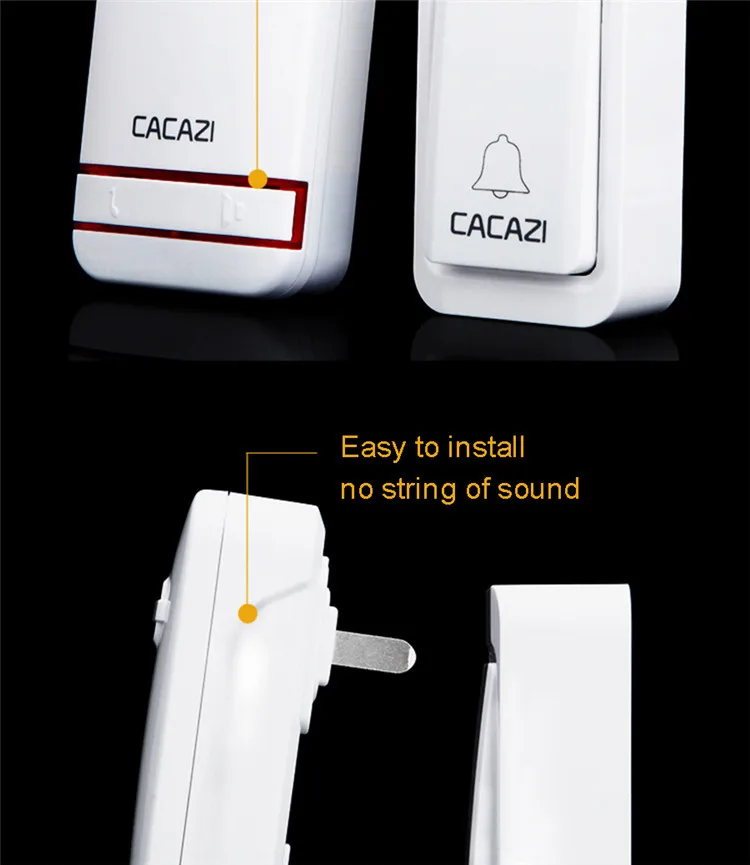 Цвет: белый (ABS) Штепсельная Вилка: ЕС/США/Великобритания (Примечание: штепсельная вилка только штепсельная вилка ЕС/США, а Великобритания-штепсельная вилка США + адаптер для Великобритании) Водонепроницаемость: Да Мощность: AC100-220V (приемник), самопитание ed (кнопка) Рабочий диапазон: 120 м на открытой местности Частота RF: 433 МГц Громкость: 3 файла (можно отключить звук) Уровень звука: 85dBA @ 3ft (приемник) Потребляемая мощность: 820 МВт (приемник) Рабочие силы: 10 Н (кнопка) Размеры: 80 × 60 × 47 мм (приемник).79 × 44 × 33 мм (кнопка) Тон Кольца: 38 тонов кольца из полифонии Характеристики: автономный питание (без аккумулятора) Примечание: нажмите на кнопку нажатия немного больше, чем традиционный дверной звонок, чтобы обеспечить достаточную мощность