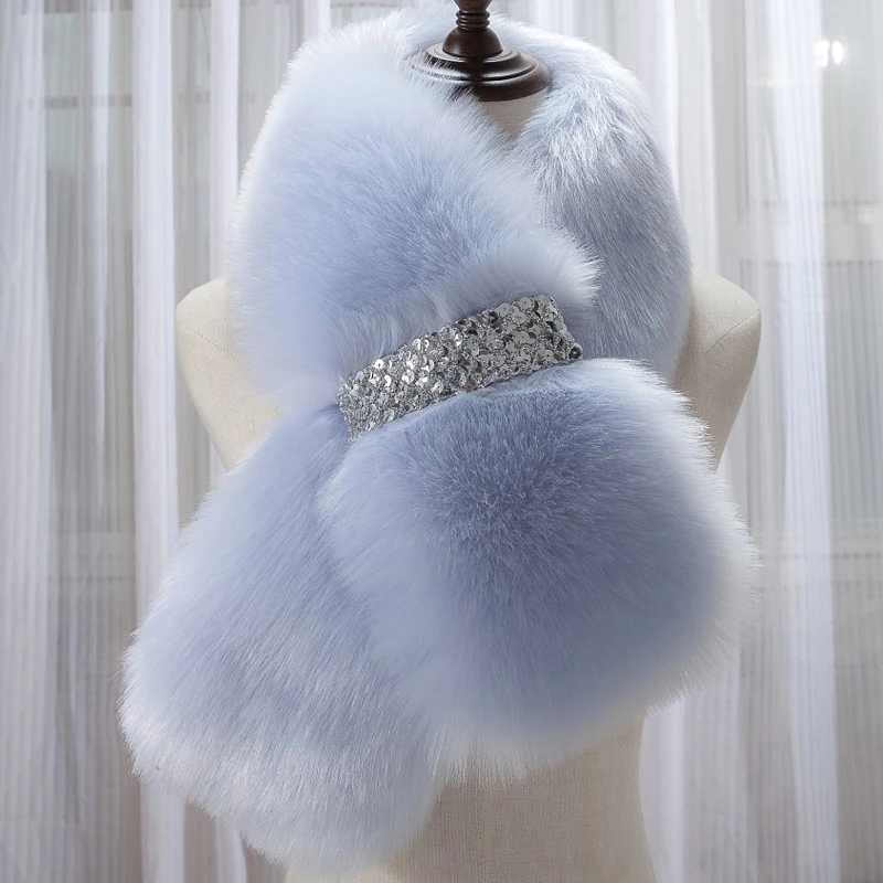 Женский Большой Мягкий утолщенный шарф из искусственного меха, зимний теплый однотонный пушистый меховой платок, разноцветный Модный шарф-палантин, шейный платок