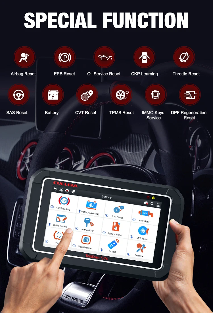 Универсальный диагностическая система: TabScan S7C является инновационным диагностическая система для большинства автомобилей марки. Он поддерживает полный системный диагноз более 130 марки автомобиля и тысячи моделей. Cоединяется с автомобиль через интерфейс OBD, чтобы начать транспортное средство диагностики процесс с чистки скрытые функции, полностью систематических Диагностика автомобиля, быстрое обслуживание и один ключ обновления.