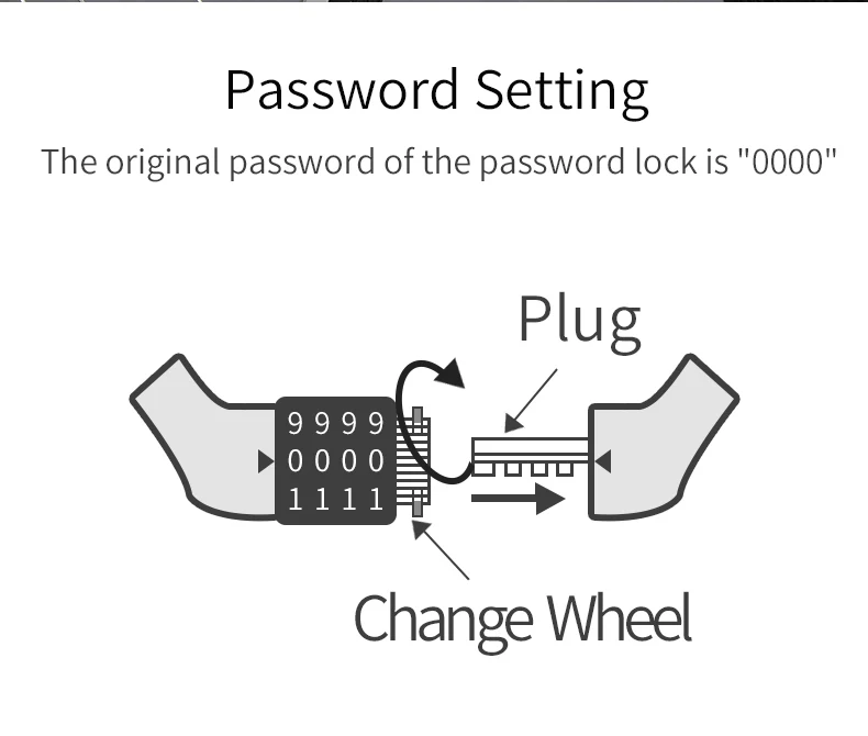 1: поверните пароль до 000, вытяните защелку 2: поверните направо до конца 3: выровняйте кодовое колесо с треугольным маркером и поверните его до нужного кода 4: поверните колесо знака влево, чтобы восстановить, и пароль может быть установлен 5: Если вам нужно изменить пароль, Повторите этот процесс