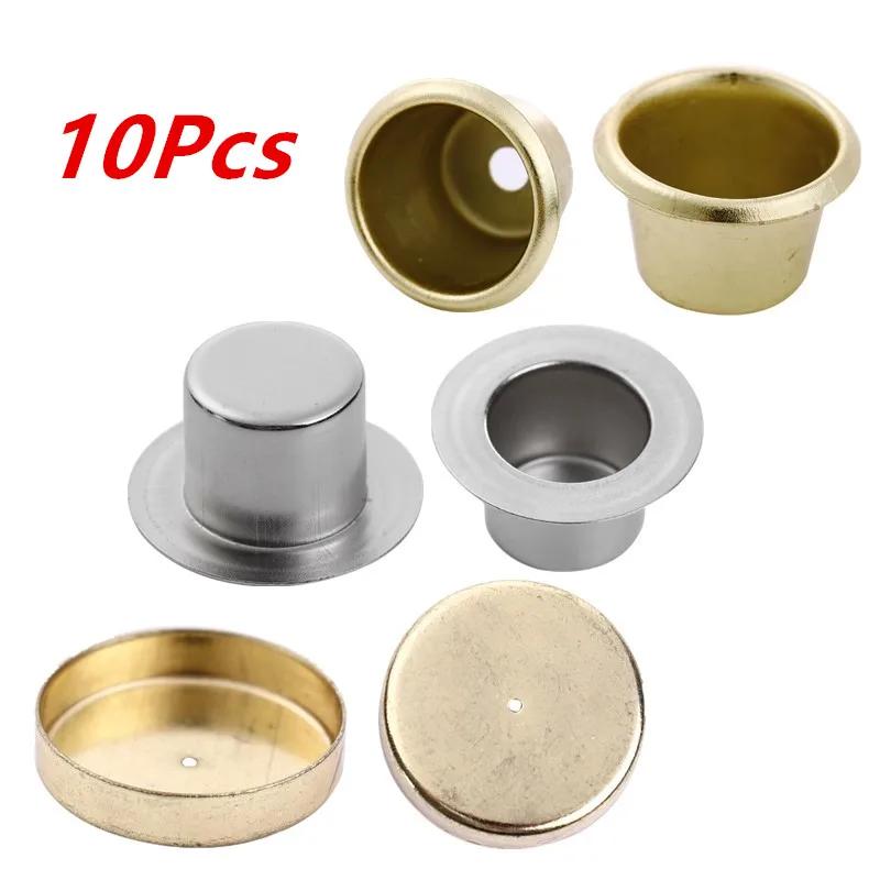 10 шт., металлические чашки для свечей, многоразовые, подходят для стандартных конических восковых свечей или Votive колышков, латунная отделка цвета для ламп или аксессуаров для изготовления свечей