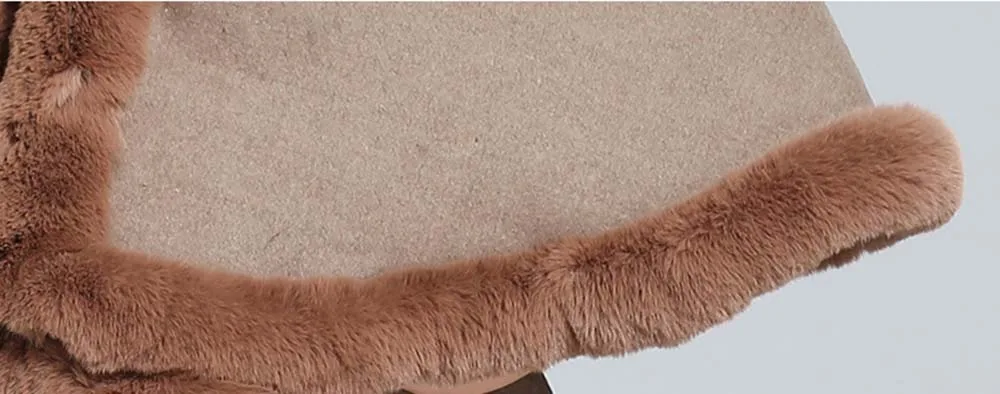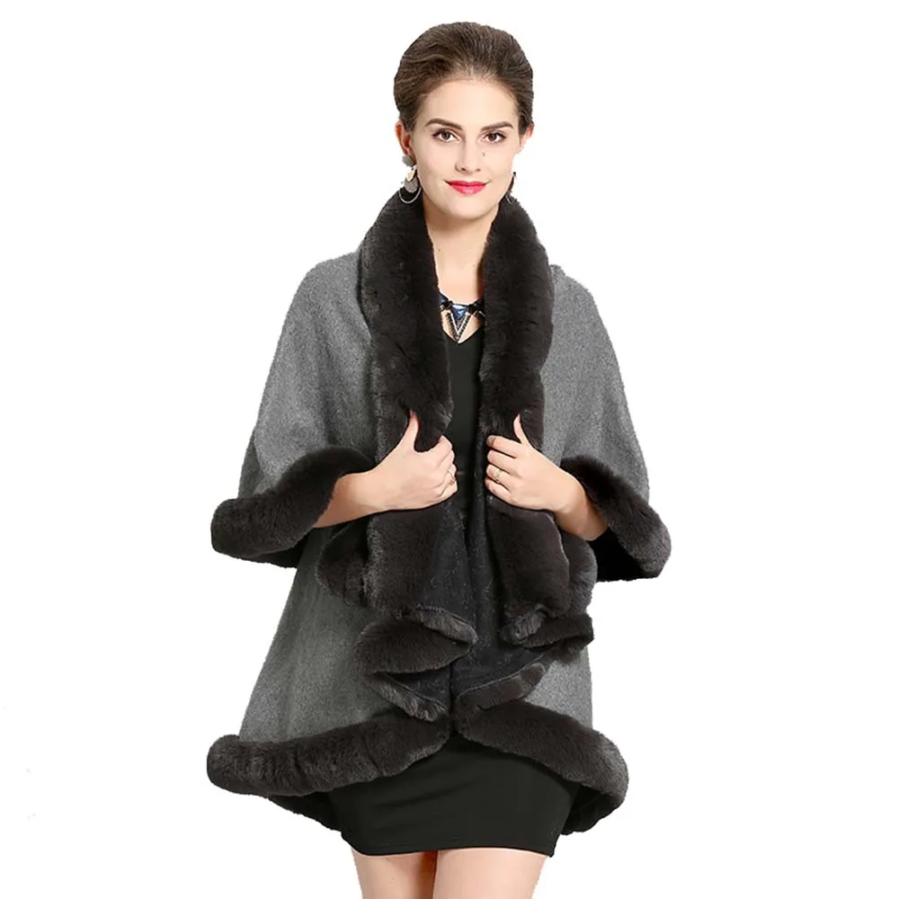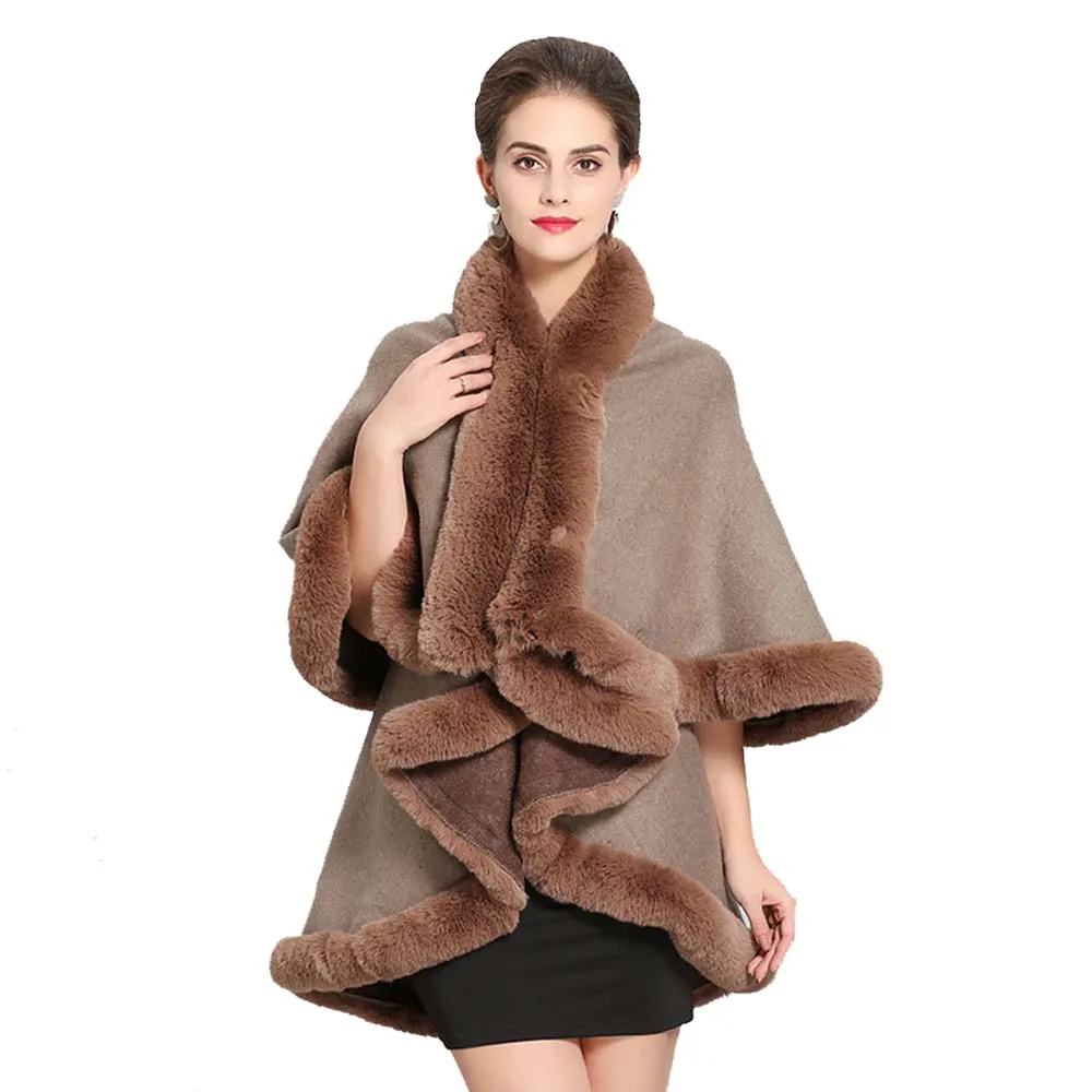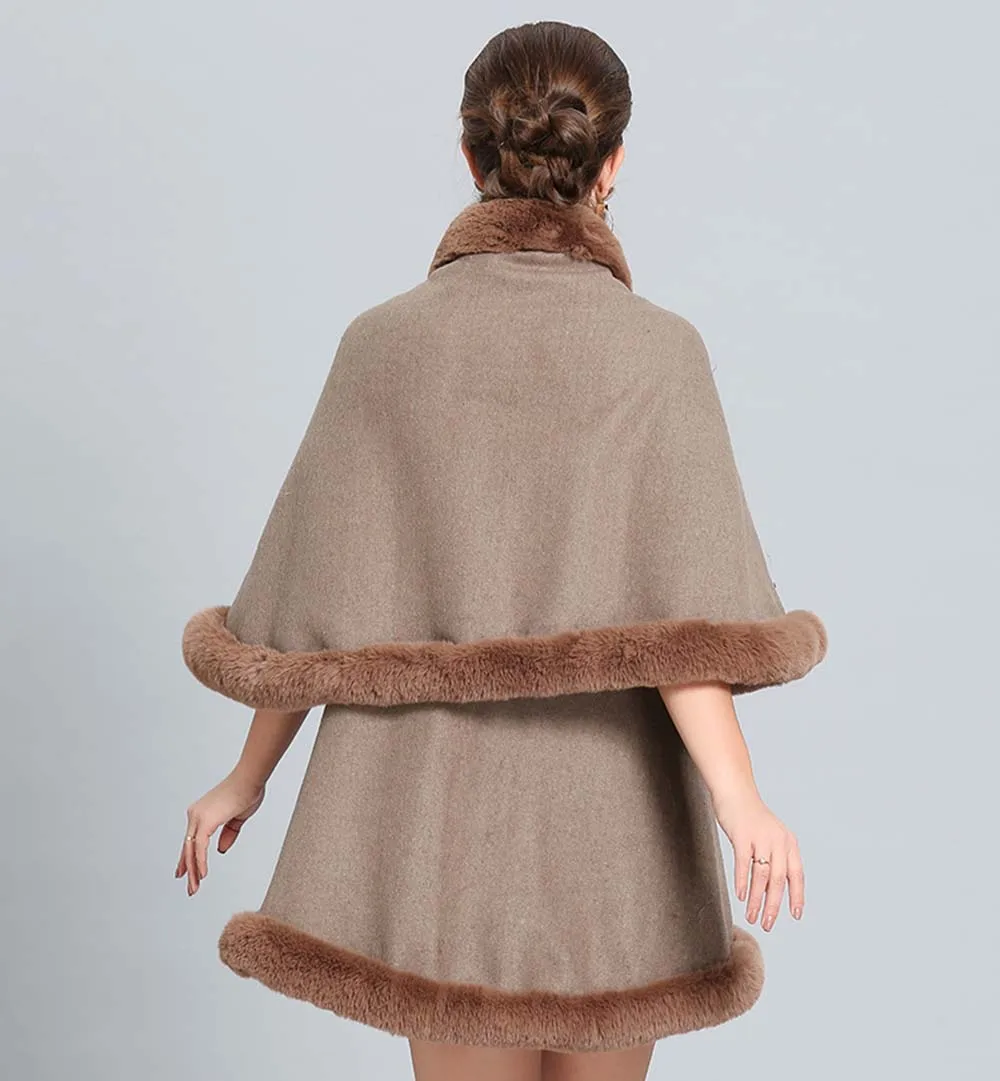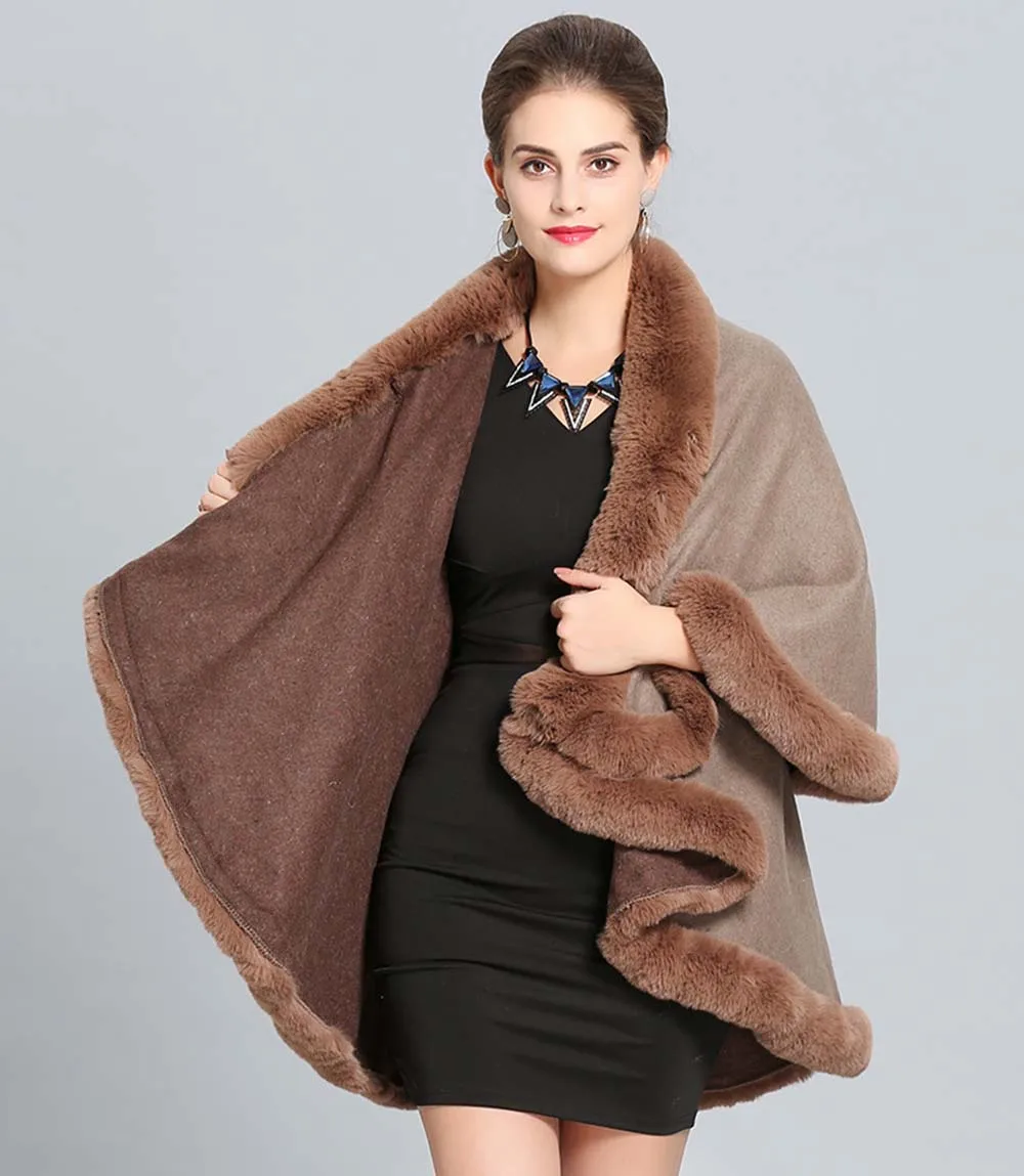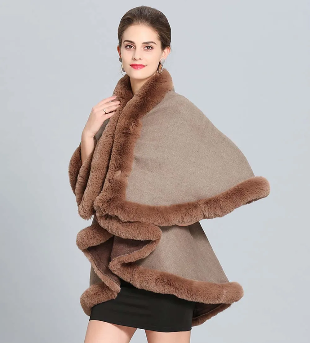 Ручная Женская Двухсторонняя куртка-накидка с воротником из искусственного меха