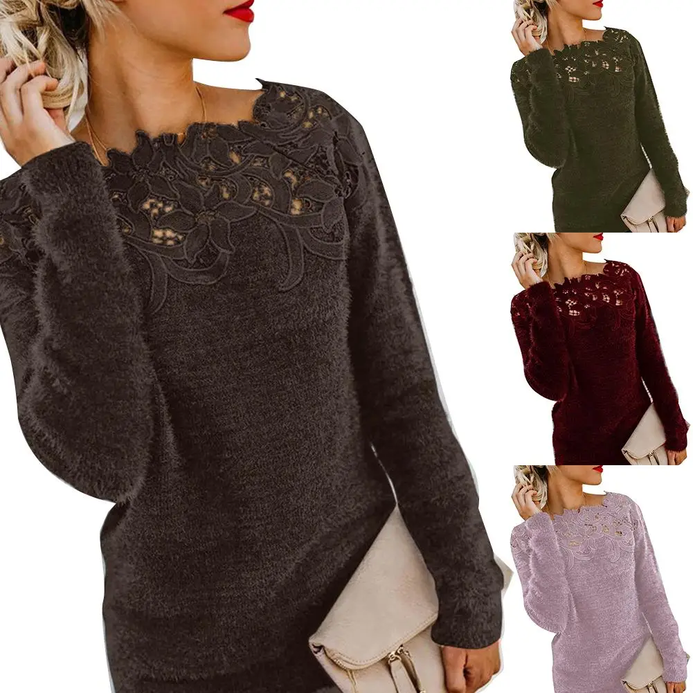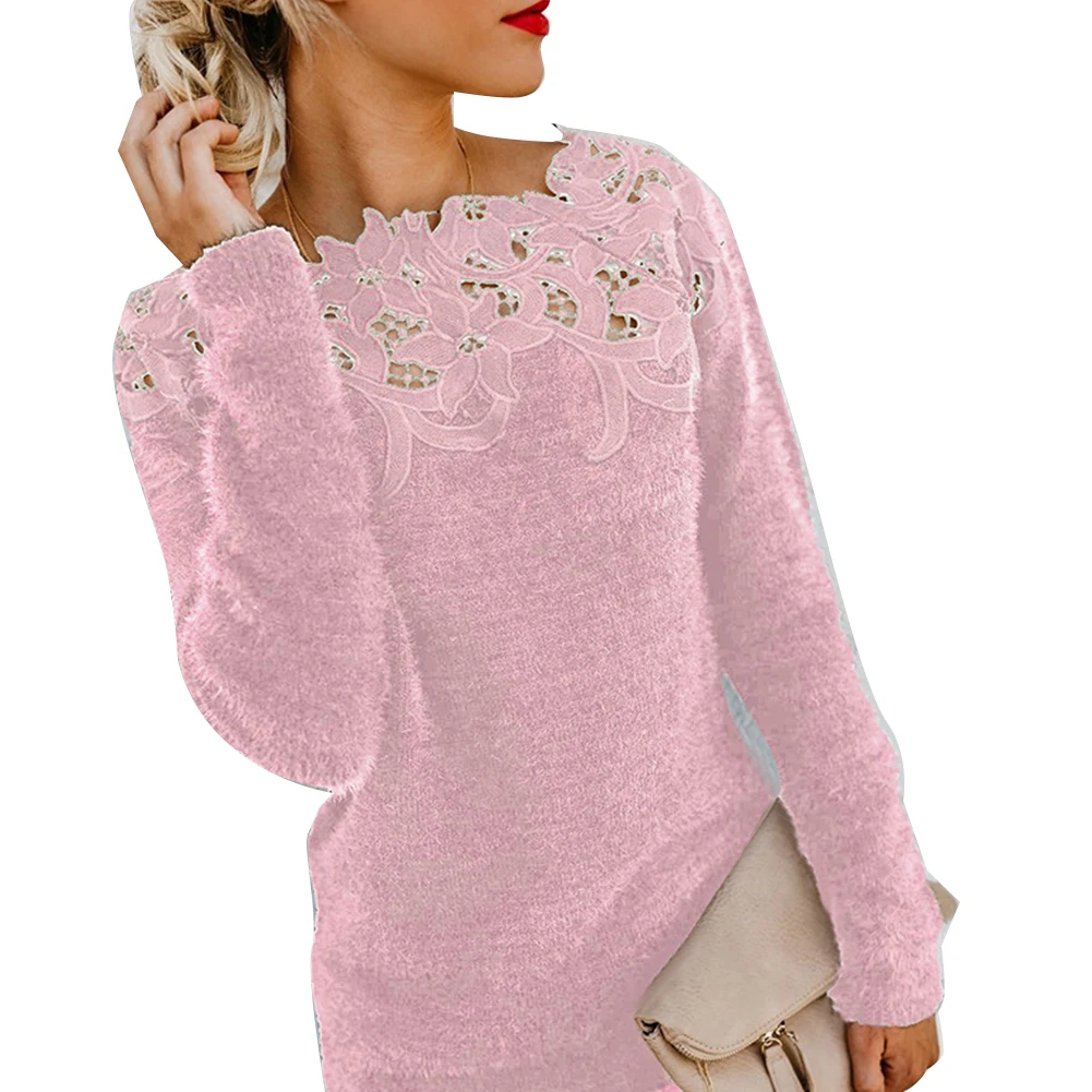 Сексуальная Женская блузка с круглым вырезом и длинным рукавом