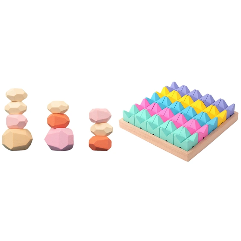 Набор 2: 25 деревянных блоков (каждый размер: 1,37x1,37x1,37 дюйма) + 10 цветных каменных строительных блоков