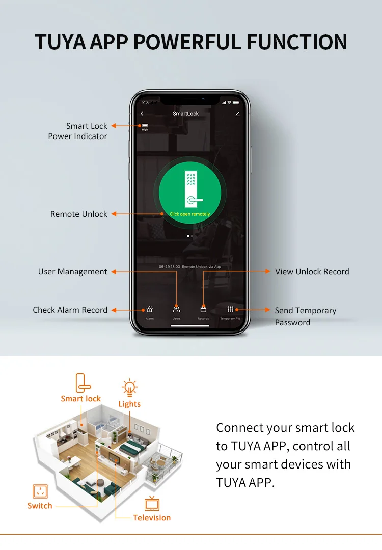 Режим разблокировки Приложение, M1 карта, отпечаток пальца, код пропуска, браслет или ключ