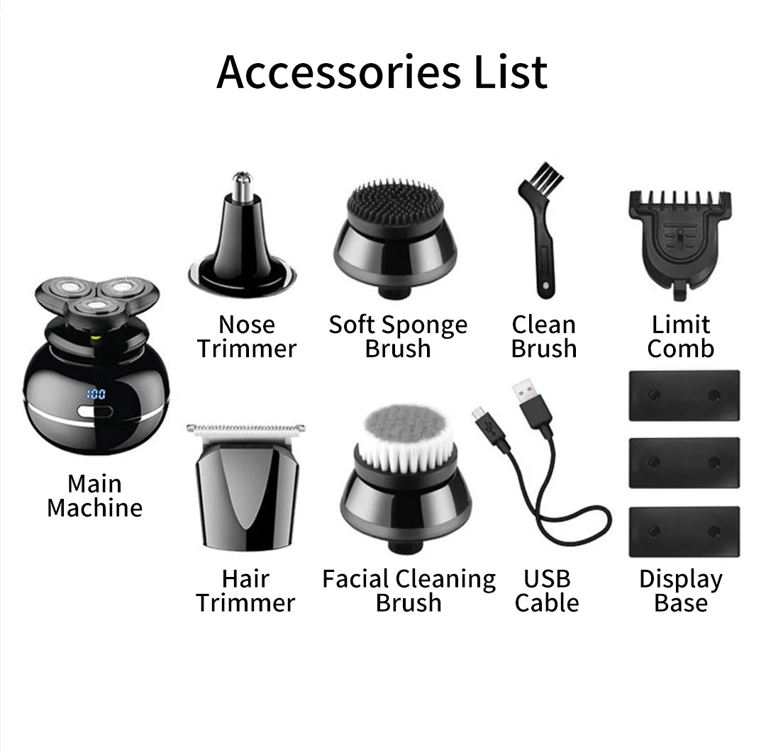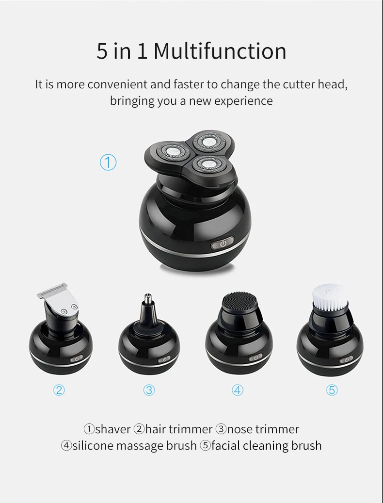 ①Shaver ②hair trimmer③nose триммер ④silicone Массажная щетка ⑤facial щеточка для чистки