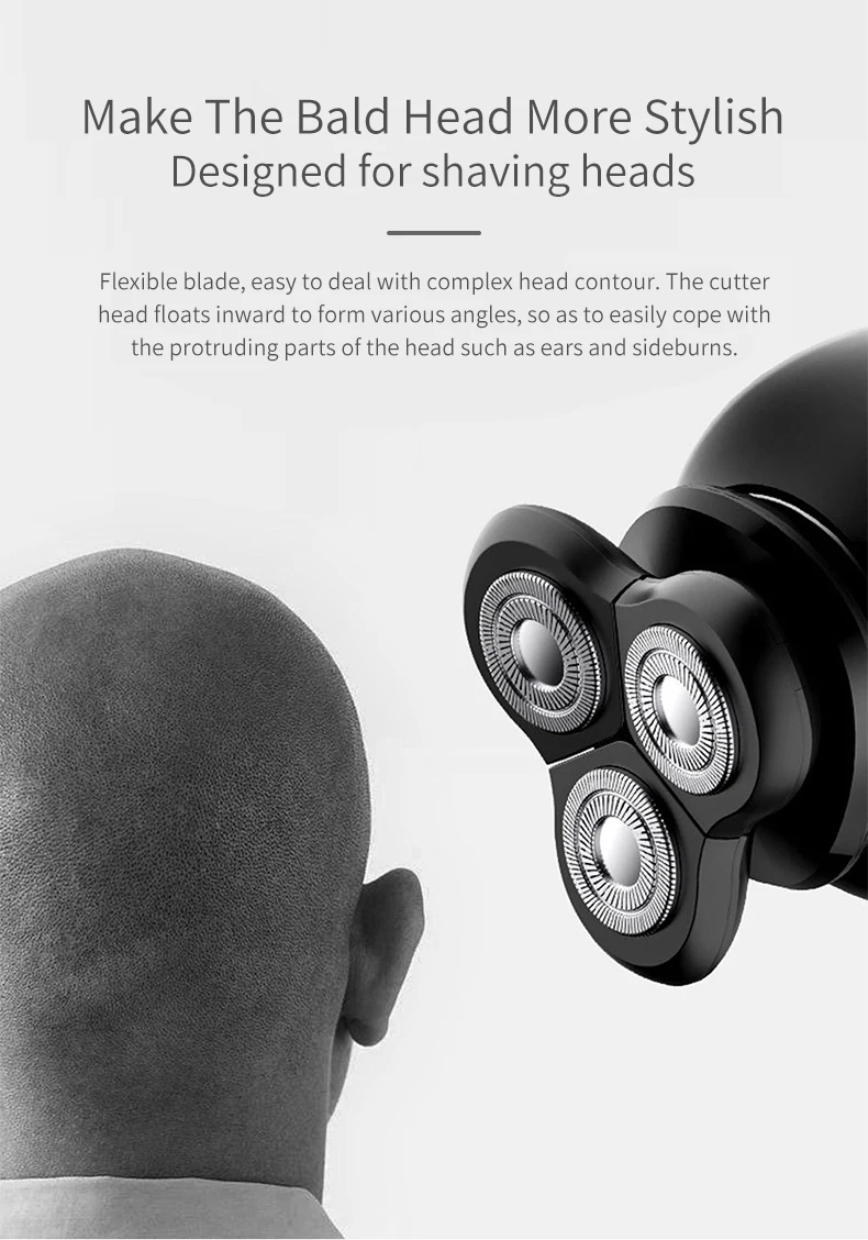 Гибкое лезвие, легко справиться со сложными контурами головы. Режущая головка плавает внутрь, образуя различные углы, чтобы легко справиться с выступающими частями головы, такими как уши и бакенбарды.