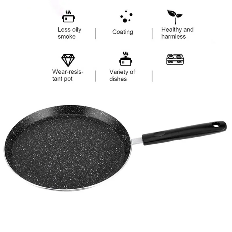 Спецификация Наименование: антипригарная сковорода Материал: алюминий Цвет: черный Характеристика -- Можно использовать для газовой плиты индукционной плиты, керамической плиты, открытого пламени. -Уплотненный корпус горшка, равномерно нагревается. -Экологическое здоровье, не липкий. -- Бакелитовая ручка, нескользящая и противоскользящая, удобная ручка.