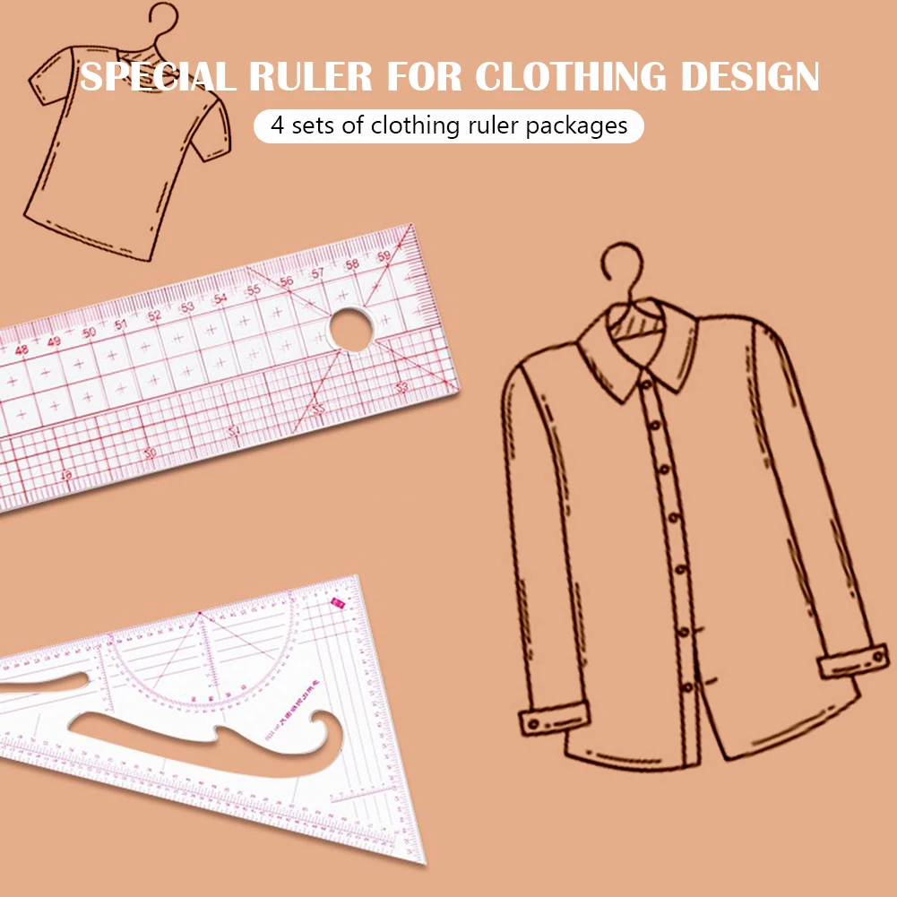 4 шт., измерительная линейка, швейная линейка для рисования, пряжа, рукав, рычаг, французский изгиб, комплект одежды, одежда, разделочная линейка
