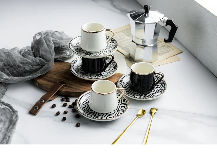 Наименование товара: турецкие чашки эспрессо с блюдцами Стиль: скандинавский Материал: керамика и фарфор Техника: ручная работа Емкость: 80 мл Цвет: черный и белый Использование: кухня, вечерние, дома, офиса, ресторана Применение: креативный подарок для любителей эспрессо Посылка: безопасная экспортная посылка Происхождение: Китай Примечание: товары ручной работы. Все размеры являются приблизительными. Цветовые вариации и несовершенства являются характеристиками ручной работы
