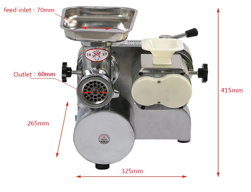1,Convenient and quick; 2,Main material is Stainless steel; 3,The cutting knife material is steel; 4.Can be use for meat, vegetable, chili powder and soybean.