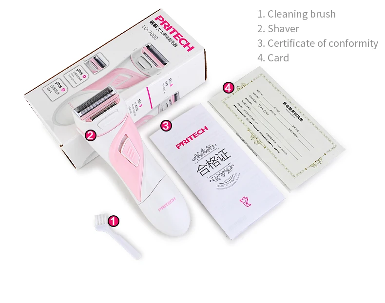 Pritech LD-7000 Бритва для тела леди может обеспечить красивые и гладкие результаты, заботясь о вашей коже. Существует два типа лезвий: бритва для бритья и бакенбарды угол лезвия можно отрегулировать.