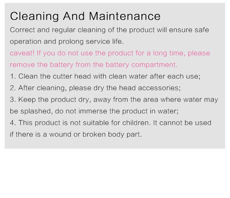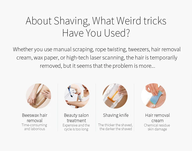 Отсутствие химической эрозии, отсутствие физических повреждений, высокая эффективность электрокопа, безопасная сеть ножей для легкого бритья волос, простота в использовании, нежный и не вредный для кожи.
