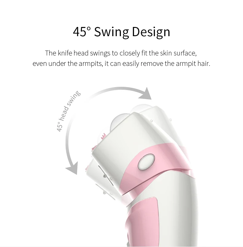 Головка ножа качается, плотно прилегает к поверхности кожи, даже под подмышками, она может легко удалить волосы подмышек.