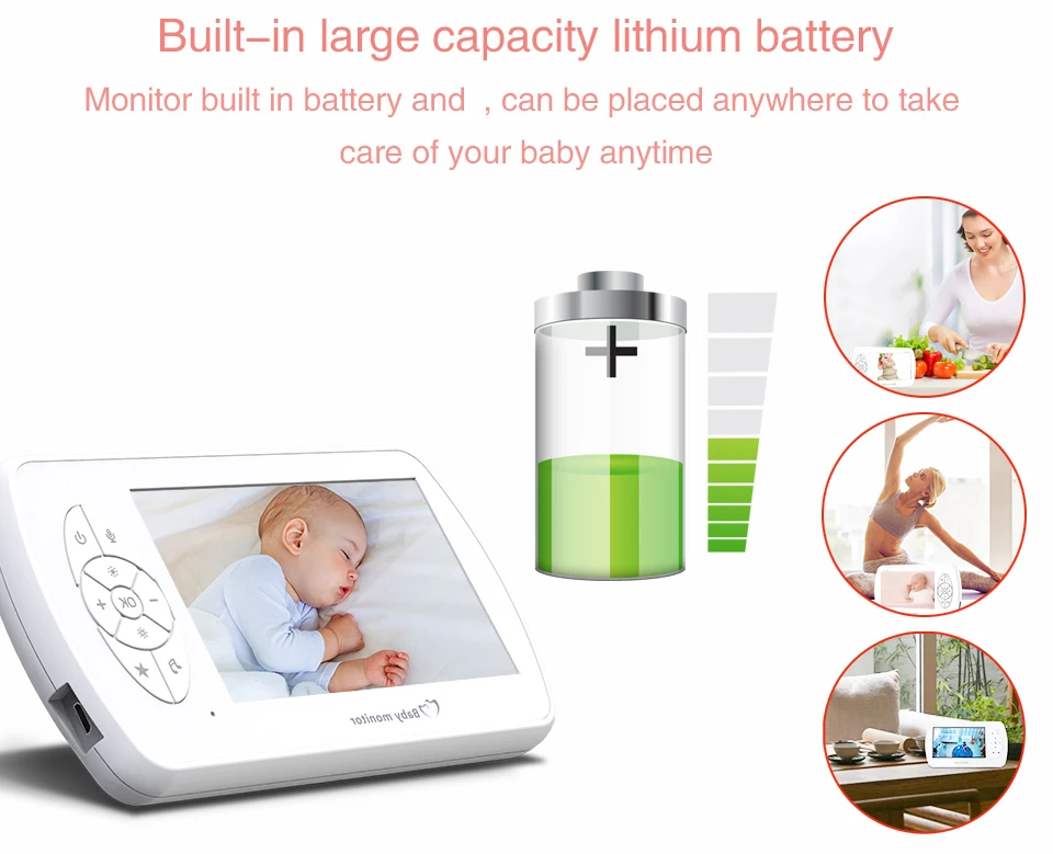 (Встроенная батарея монитора и может быть размещена в любом месте, чтобы заботиться о вашем ребенке в любое время)