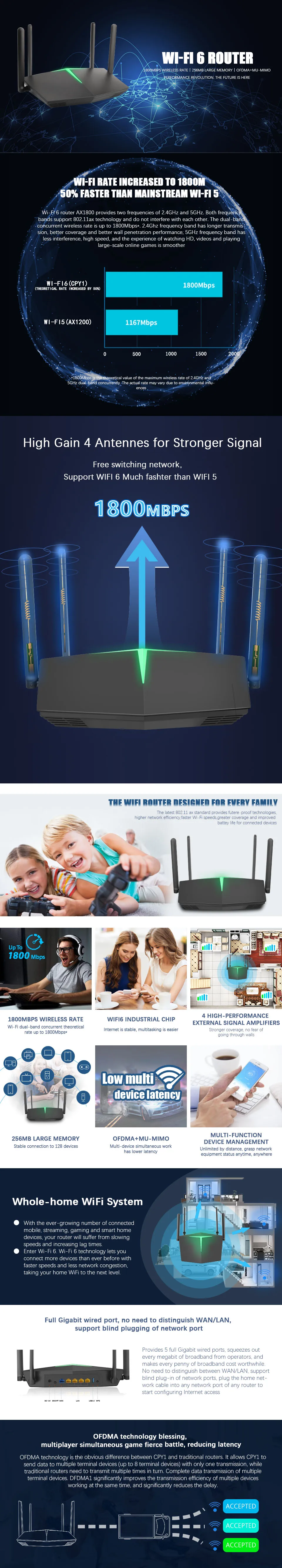 1. Wifi6 маршрутизатор в Основном предназначен для офиса, дома, IoT торгового центра и ресторана. Он обеспечивает высокоскоростную, надежную маршрутизацию и возможности передачи данных для удовлетворения различных вариантов применения
