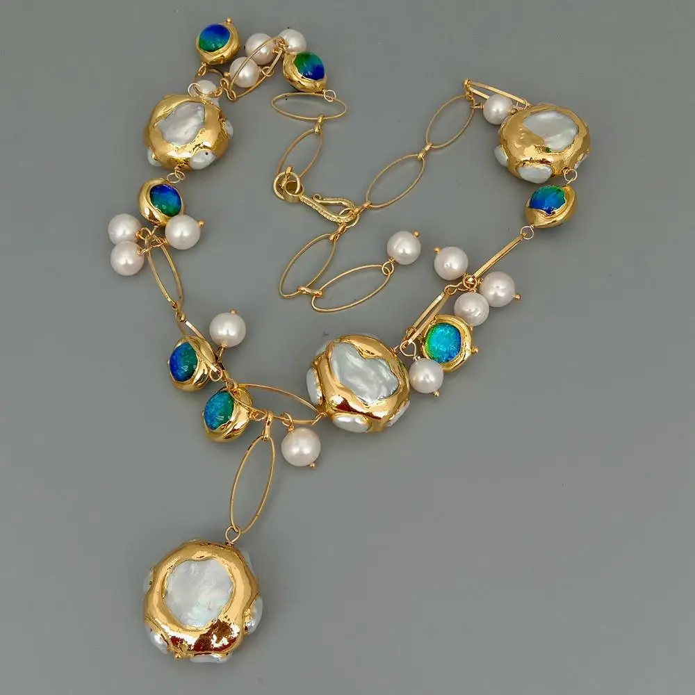 Информация о драгоценных камнях: Пресноводный Культивированный жемчуг, белый жемчуг Кеши и картофельный жемчуг, синее Муранское Стекло Круглые бусины с позолотой, хорошее качество, высокий блеск!