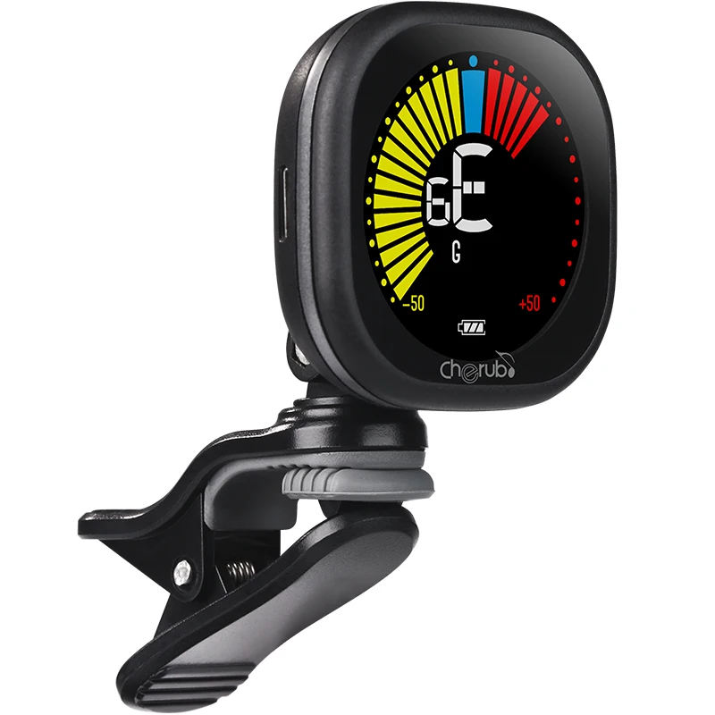 Бренд: Cherub Режим: WST-670 Тюнинг точность: ± 1 цент Опорный шаг: 440 Гц Метод обнаружения: пьезо (зажим) Настройка: Хроматическая, гитара, скрипка, гавайская гитара Способ настройки; Зажим (Настройка вибрацией) Диапазон настройки: A0 (27,5 Гц) ~ C8(4186 Гц) Питание: встроенный 3,7 V/ 110 мАч перезаряжаемый аккумулятор Размер посылка: 13*15*4 см/5,1*5,9*1,6 дюймов Посылка Вес: 100g/3,5 oz
