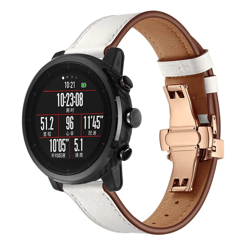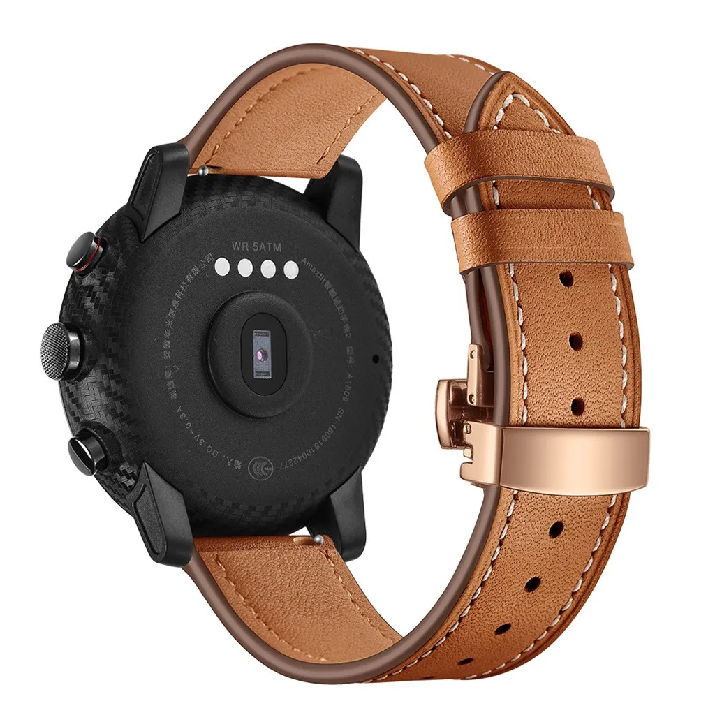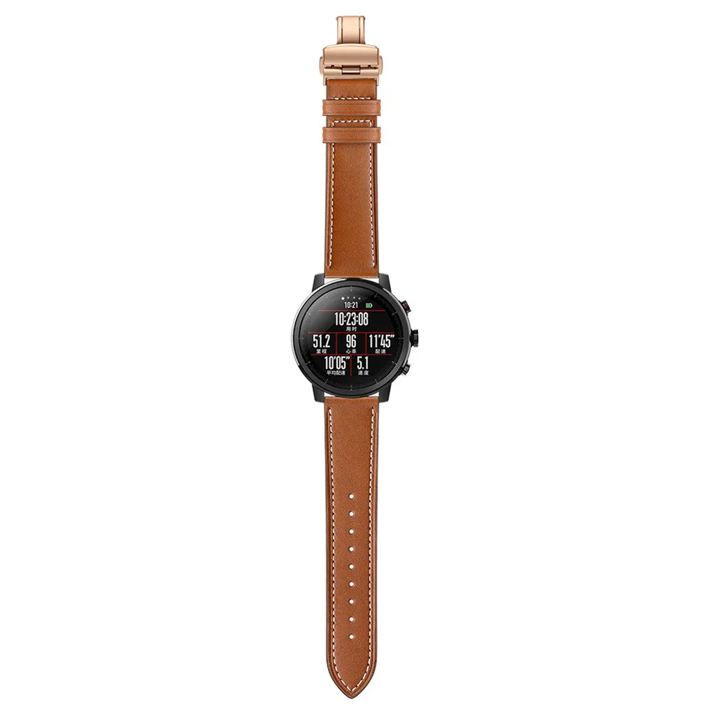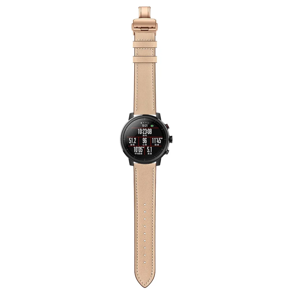 Кожаный ремешок с пряжкой-бабочкой для наручных часов AMAZFIT 2/2S 22 мм