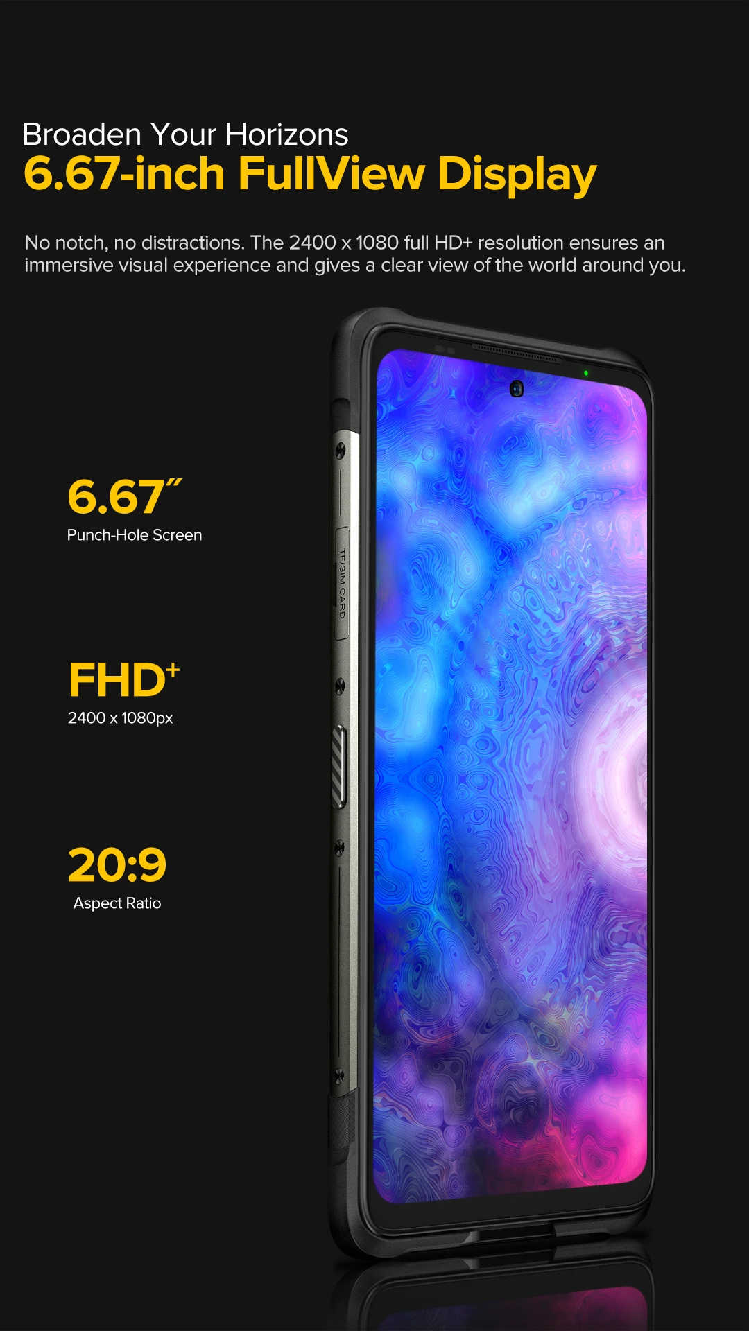 Сохраните свои любимые игры и оптимизируйте свои впечатления от приложений с набором Микросхем Dimensity 800 7 нм и 8 Гб оперативной памяти. Храните до 200 любимых фильмов с 128 ГБ внутренней памяти, а Armor 10 5G поддерживает добавление до 2 ТБ TF-карт *.