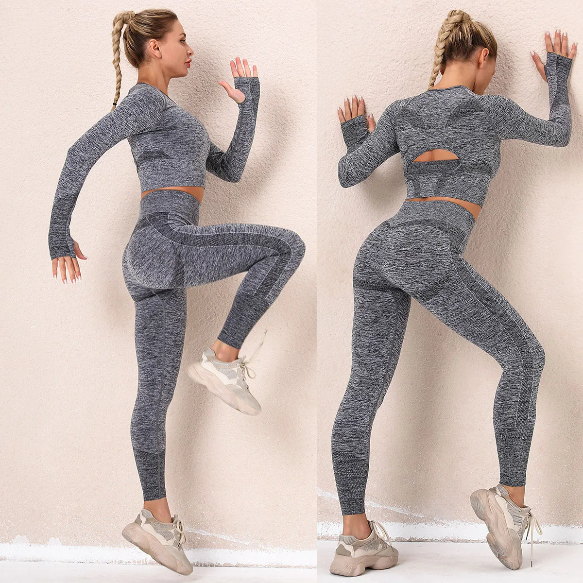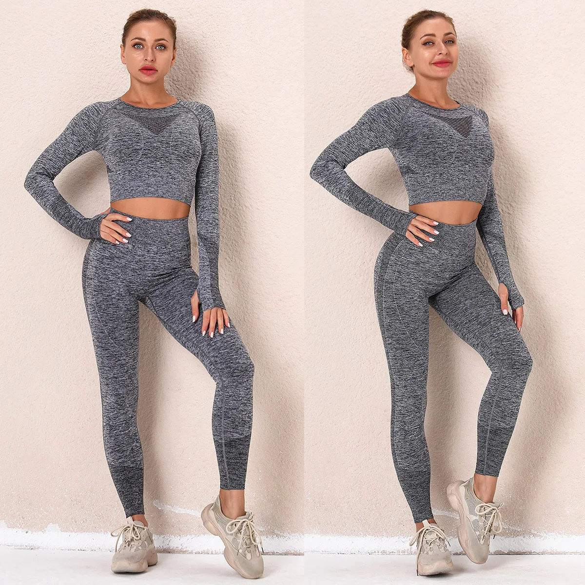 Бесшовный трикотажный Набор для йоги, женский тонкий спортивный костюм для фитнеса, спортивные Леггинсы, дышащие штаны для бега, спортивная рубашка