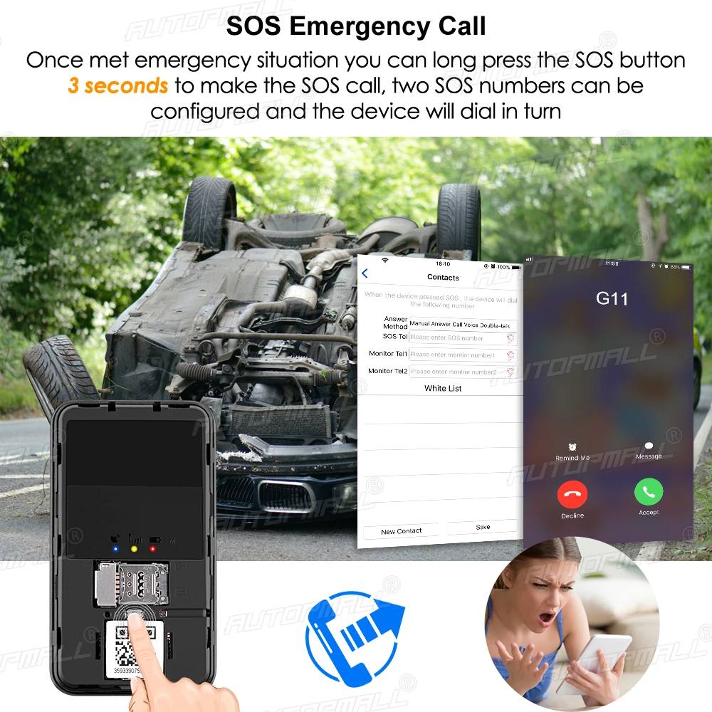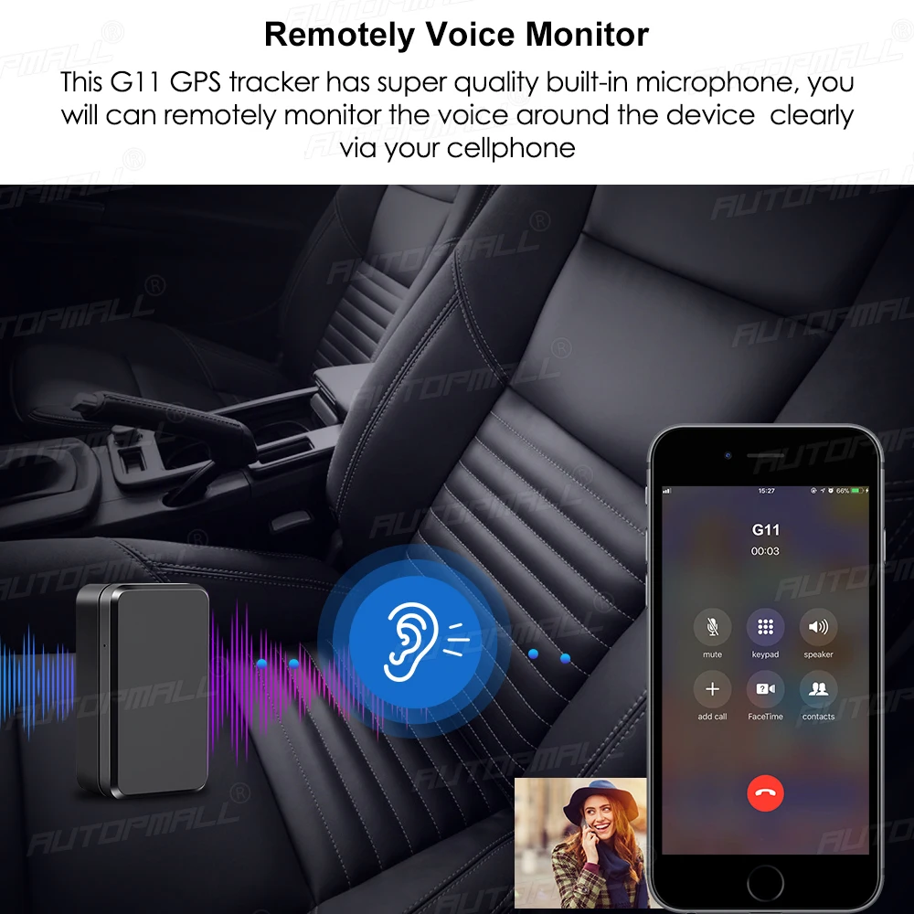 Этот gps-трекер G11 имеет супер качественный Встроенный микрофон, вы можете дистанционно контролировать голос вокруг устройства с помощью вашего мобильного телефона