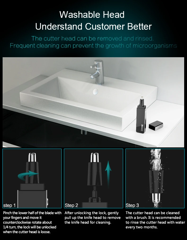 Откройте трехмерное вращающееся лезвие, легко обрезать, не вытягивая волосы в носу